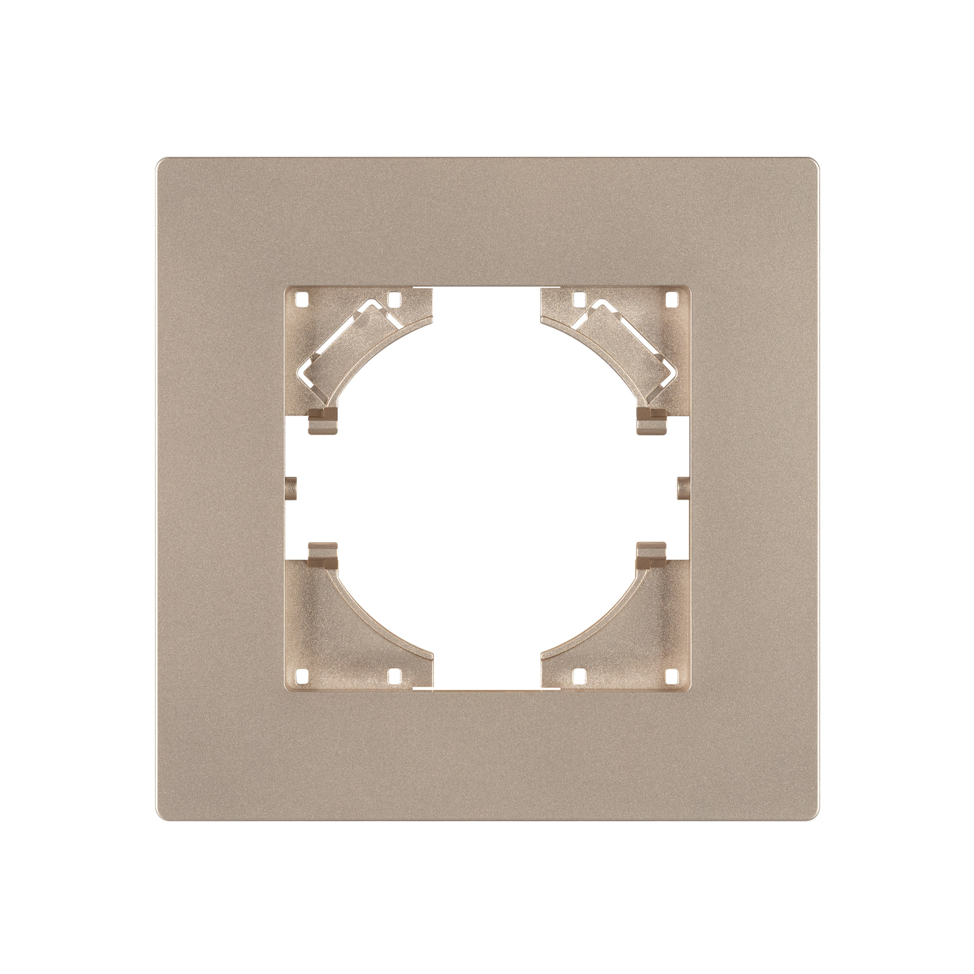 Рамка пластиковая на 1 пост, под встраиваемый механизм. Цвет - золотой. Среднего уровня герметичности IP20. Ориентация монтажа - горизонтальная (основным ориентиром служат посадочные выступы для накладки механизма).