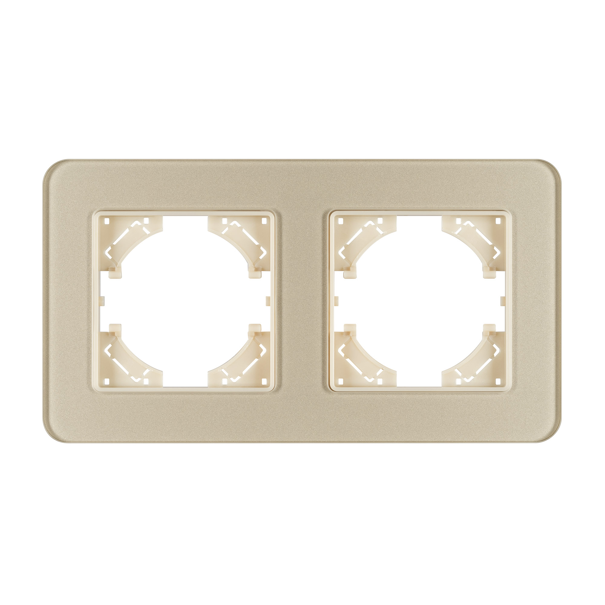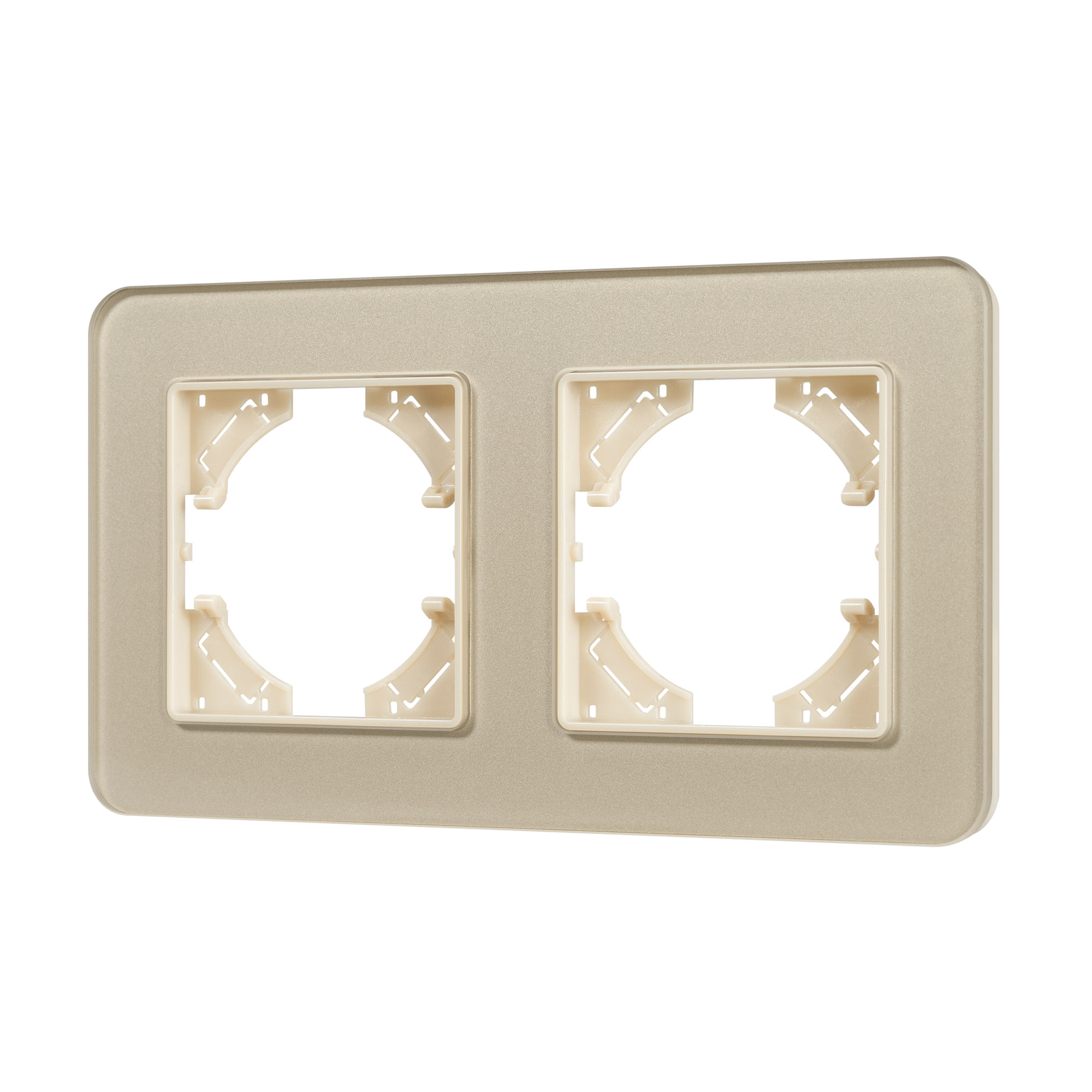 Рамка стеклянная на 2 поста, под встраиваемый механизм. Цвет - золотой. Среднего уровня герметичности IP20. Ориентация монтажа - горизонтальная (основным ориентиром служат посадочные выступы для накладки механизма).
