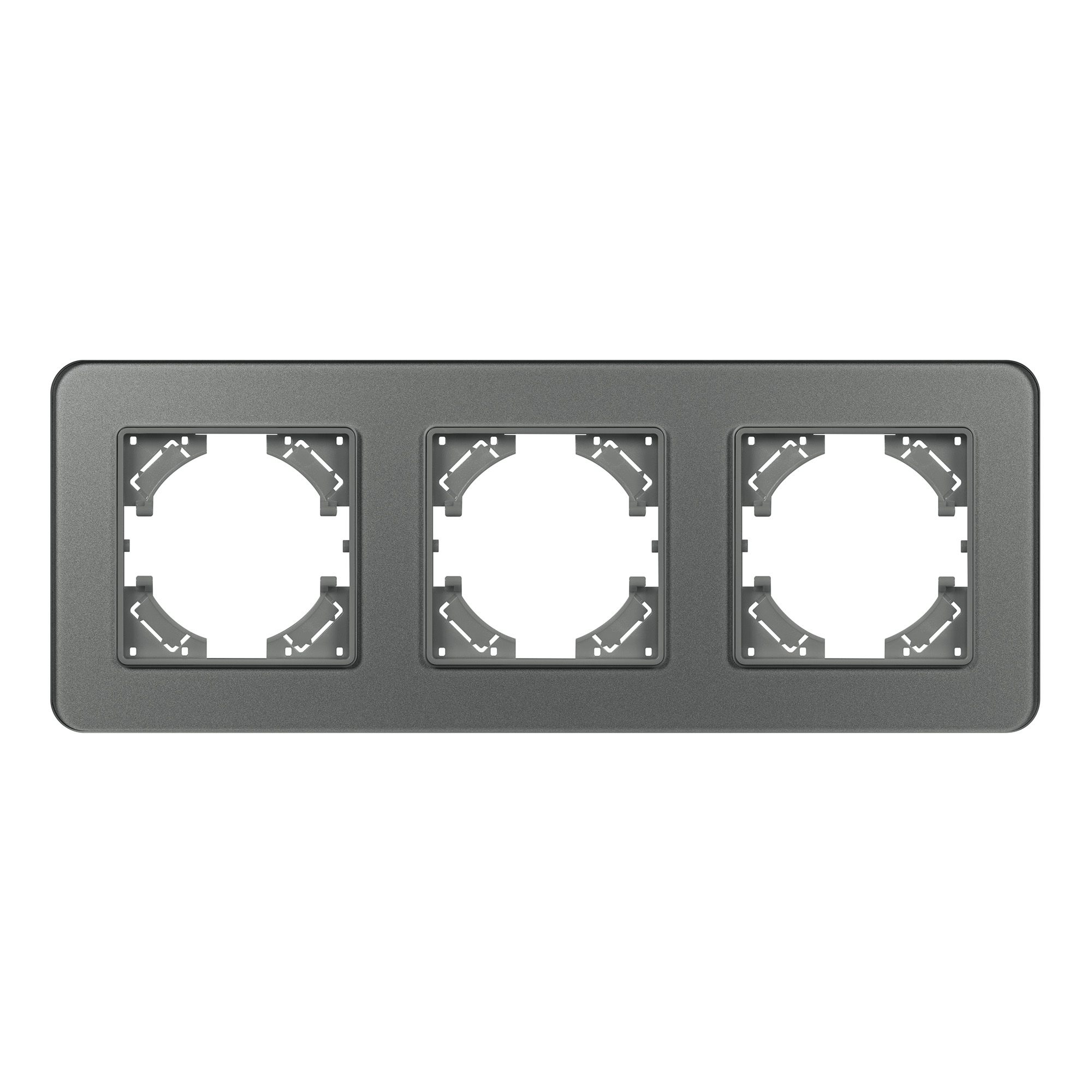 Рамка стеклянная на 3 поста, под встраиваемый механизм. Цвет - серый. Среднего уровня герметичности IP20. Ориентация монтажа - горизонтальная (основным ориентиром служат посадочные выступы для накладки механизма).