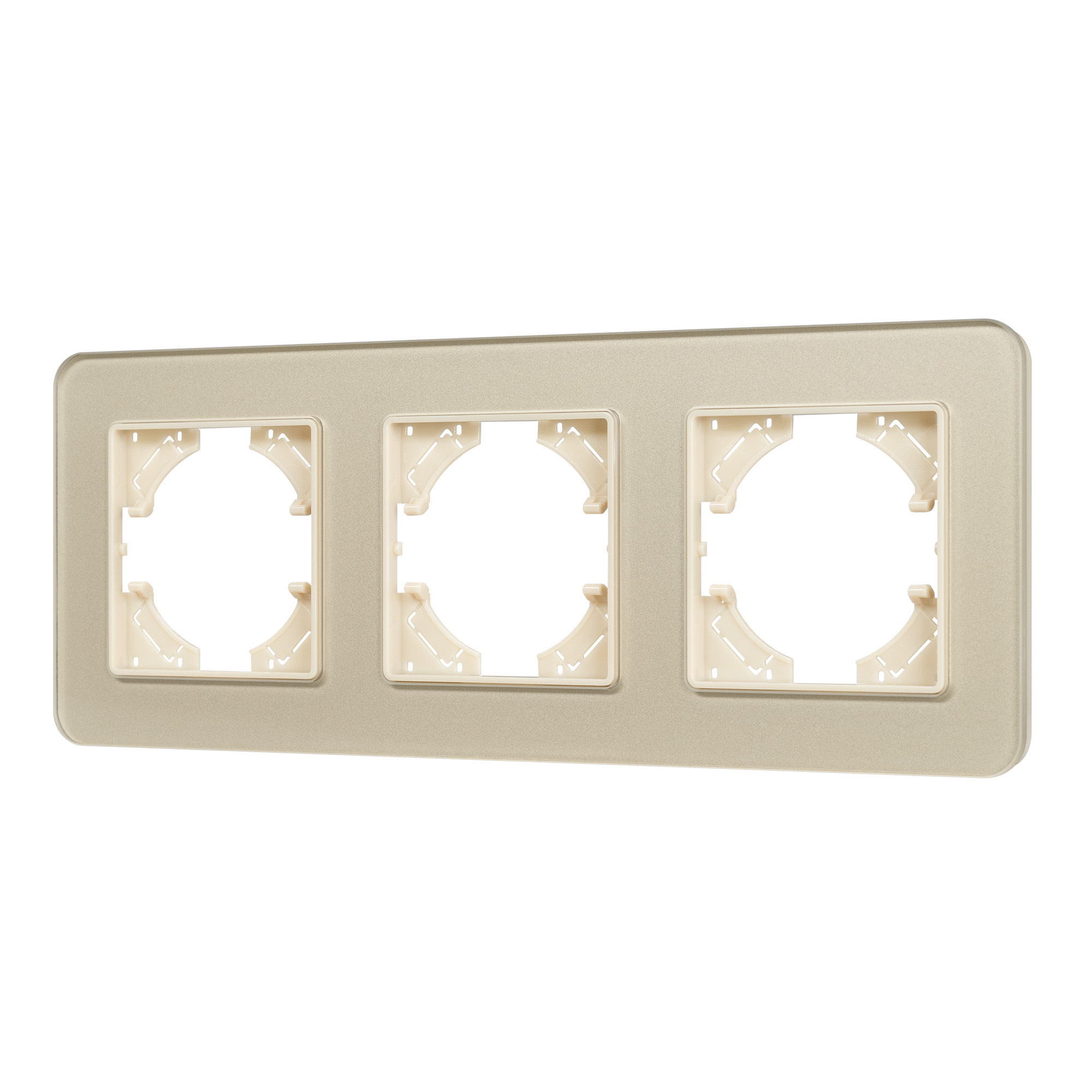 Рамка стеклянная на 3 поста, под встраиваемый механизм. Цвет - золотой. Среднего уровня герметичности IP20. Ориентация монтажа - горизонтальная (основным ориентиром служат посадочные выступы для накладки механизма).