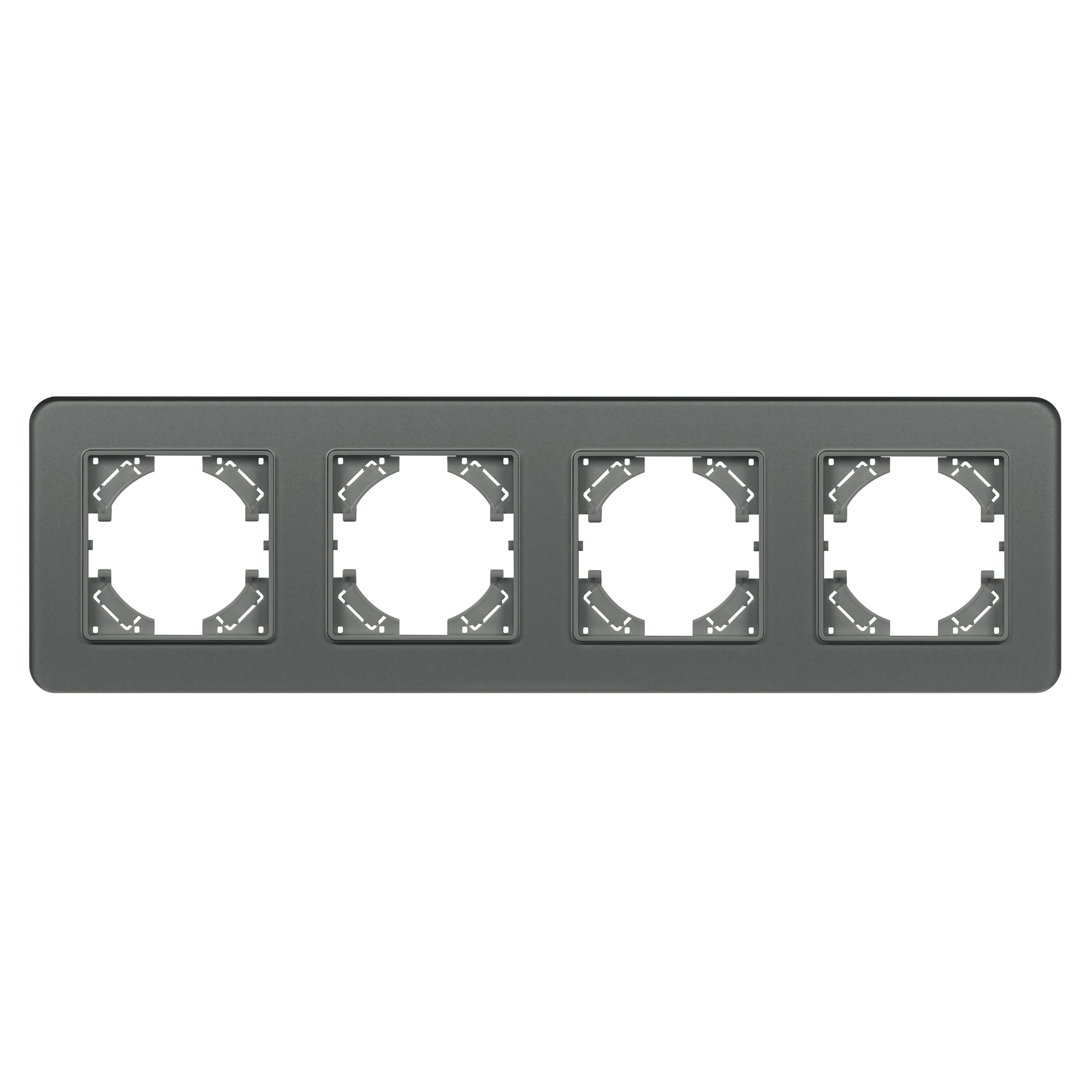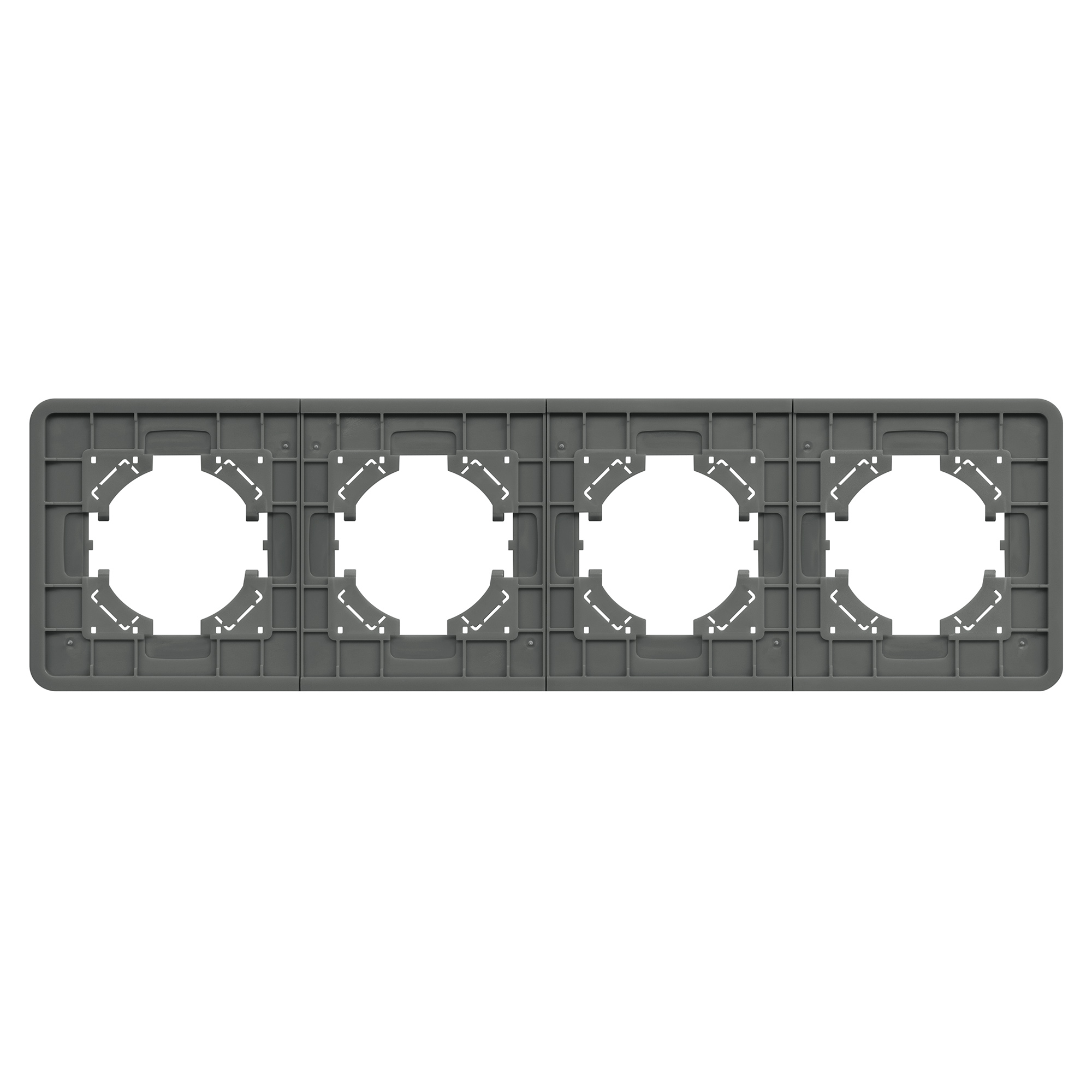 Рамка стеклянная на 4 поста, под встраиваемый механизм. Цвет - серый. Среднего уровня герметичности IP20. Ориентация монтажа - горизонтальная (основным ориентиром служат посадочные выступы для накладки механизма).