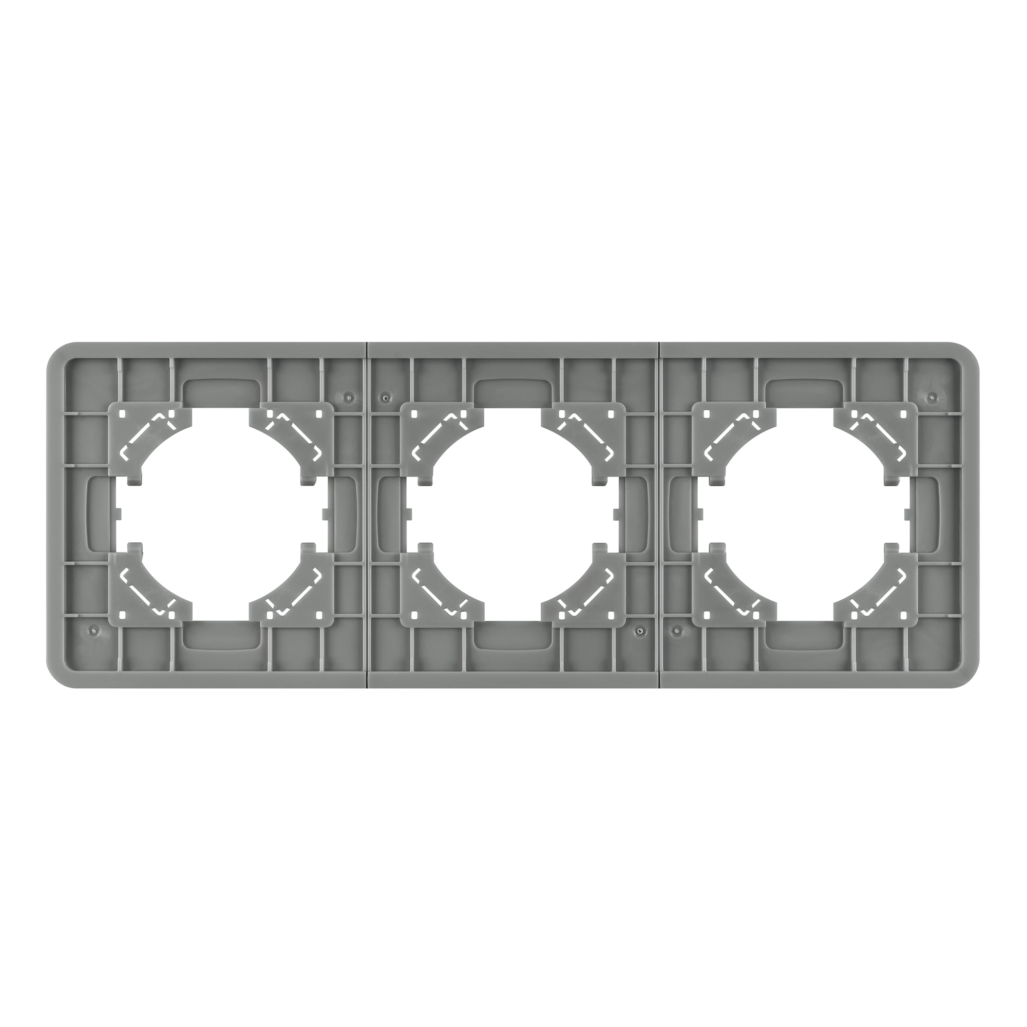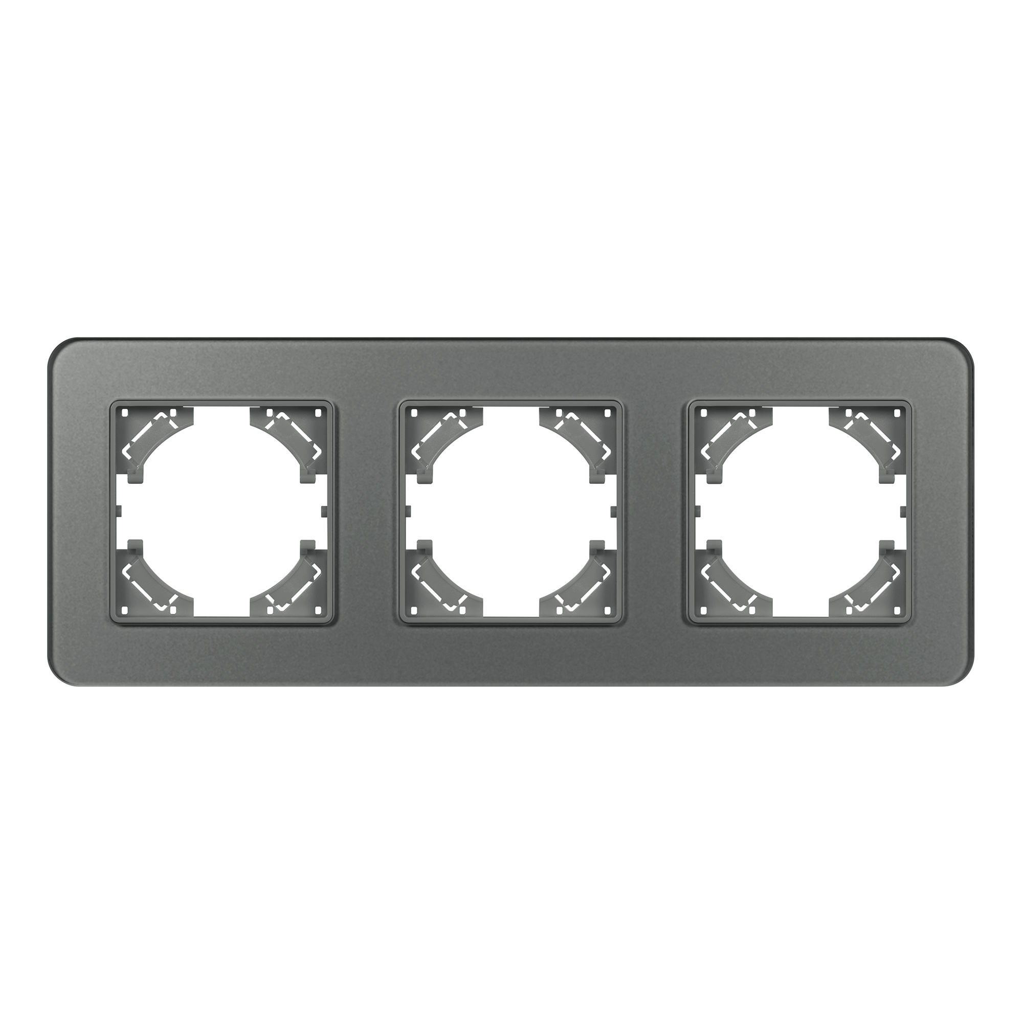 Рамка стеклянная на 3 поста, под встраиваемый механизм. Цвет - серый с Soft-Touch покрытием. Среднего уровня герметичности IP20. Ориентация монтажа - горизонтальная (основным ориентиром служат посадочные выступы для накладки механизма).