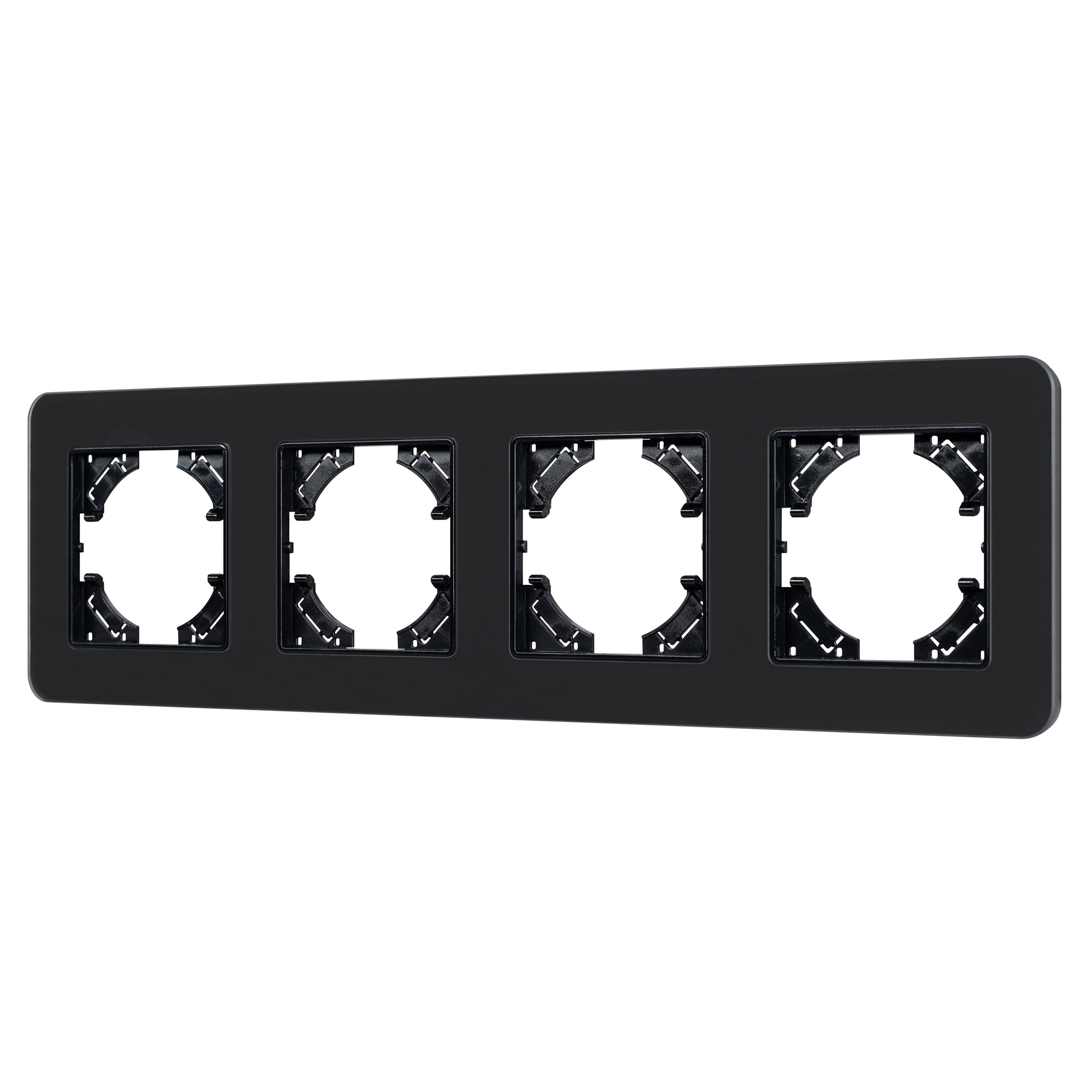 Рамка стеклянная на 4 поста, под встраиваемый механизм. Цвет - черный с Soft-Touch покрытием. Среднего уровня герметичности IP20. Ориентация монтажа - горизонтальная (основным ориентиром служат посадочные выступы для накладки механизма).