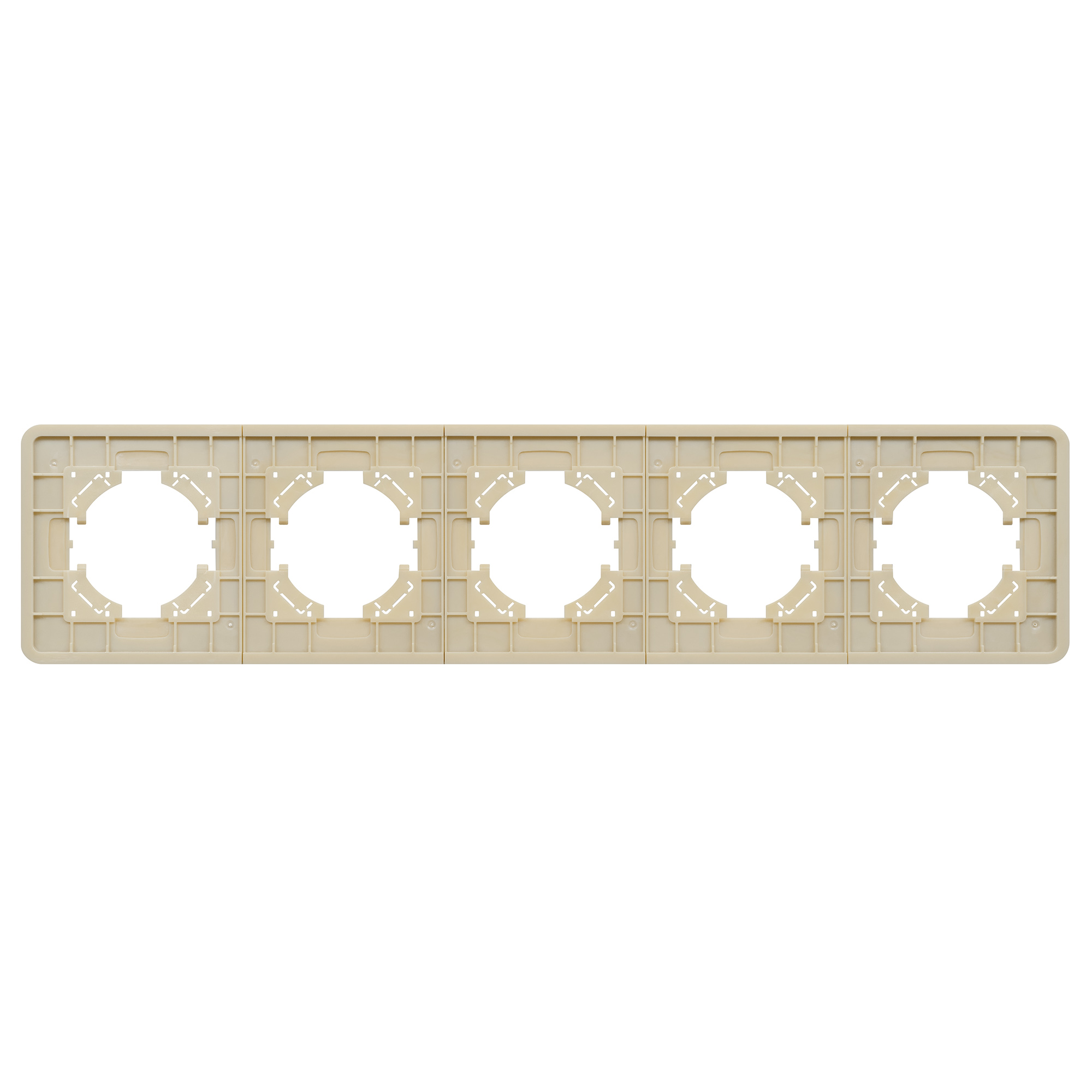 Рамка алюминиевая на 5 постов, под встраиваемый механизм. Цвет - золотой с Soft-Touch покрытием. Среднего уровня герметичности IP20. Ориентация монтажа - горизонтальная (основным ориентиром служат посадочные выступы для накладки механизма).