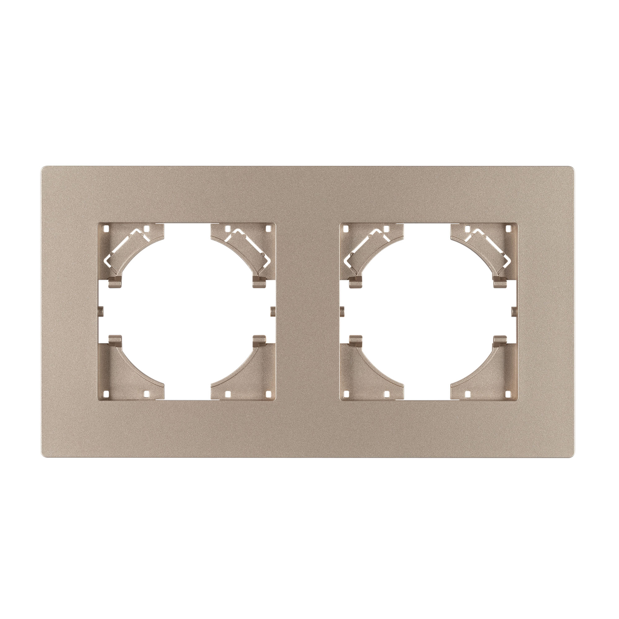Рамка пластиковая на 2 поста, под встраиваемый механизм. Цвет - золотой. Среднего уровня герметичности IP20. Ориентация монтажа - горизонтальная (основным ориентиром служат посадочные выступы для накладки механизма).