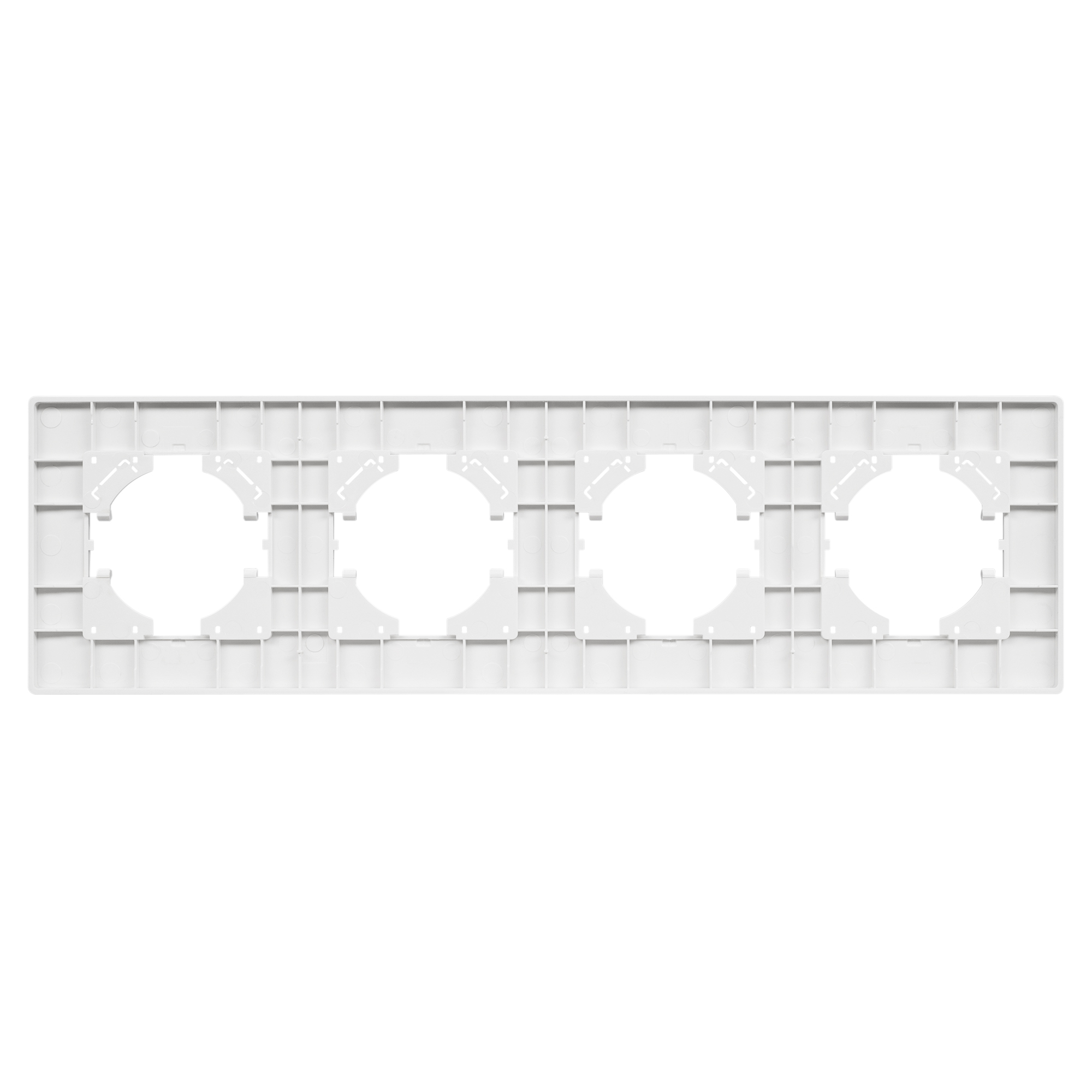 Рамка пластиковая на 4 поста, под встраиваемый механизм. Цвет - белый. Среднего уровня герметичности IP20. Ориентация монтажа - горизонтальная (основным ориентиром служат посадочные выступы для накладки механизма).