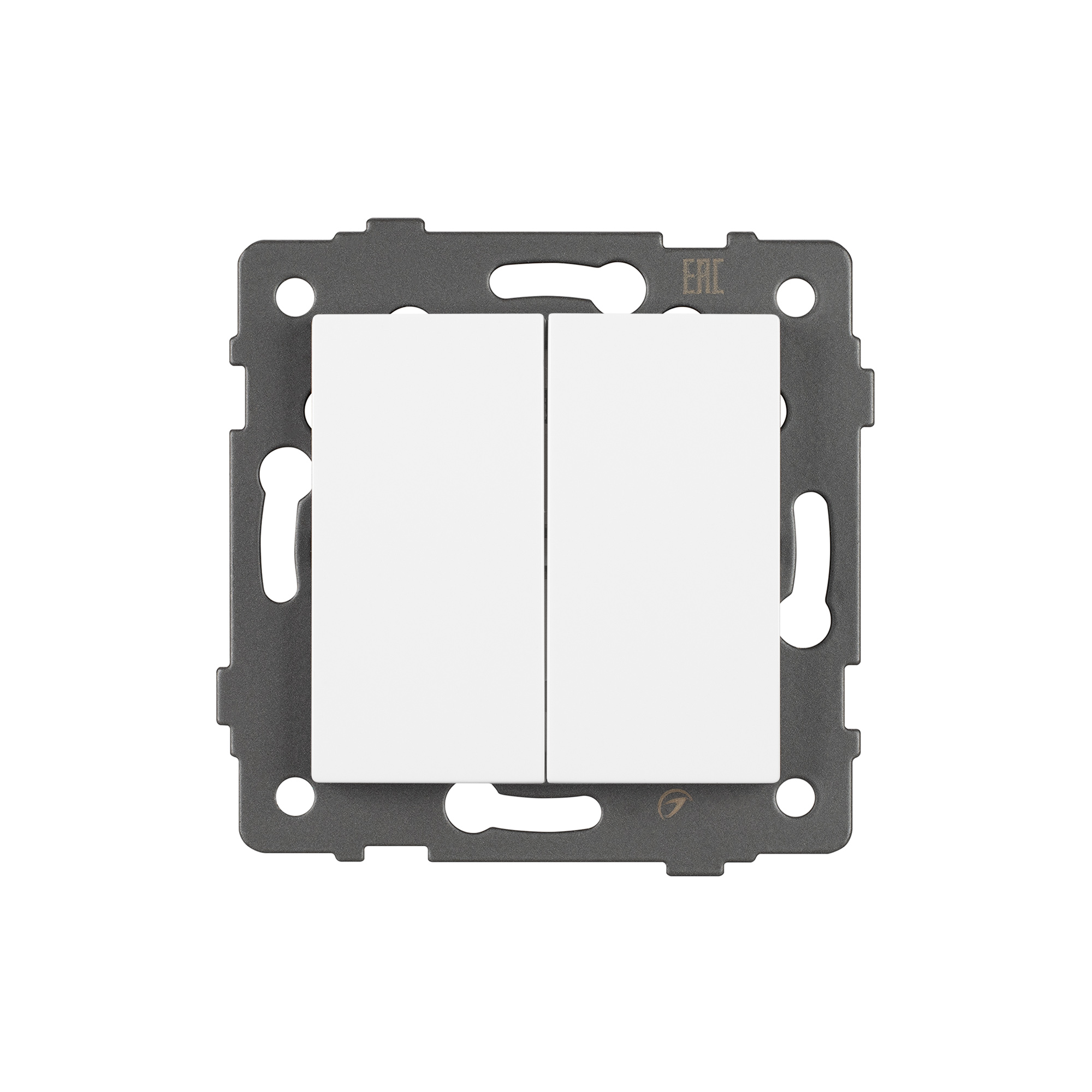 Механизм выключателя света клавишный на 1 пост 2 возвратные клавиши. Цвет - белый. Без фронтальной рамки. Уровень пылевлагозащиты IP20. Выключатель устанавливается в стандартный круглый подрозетник.