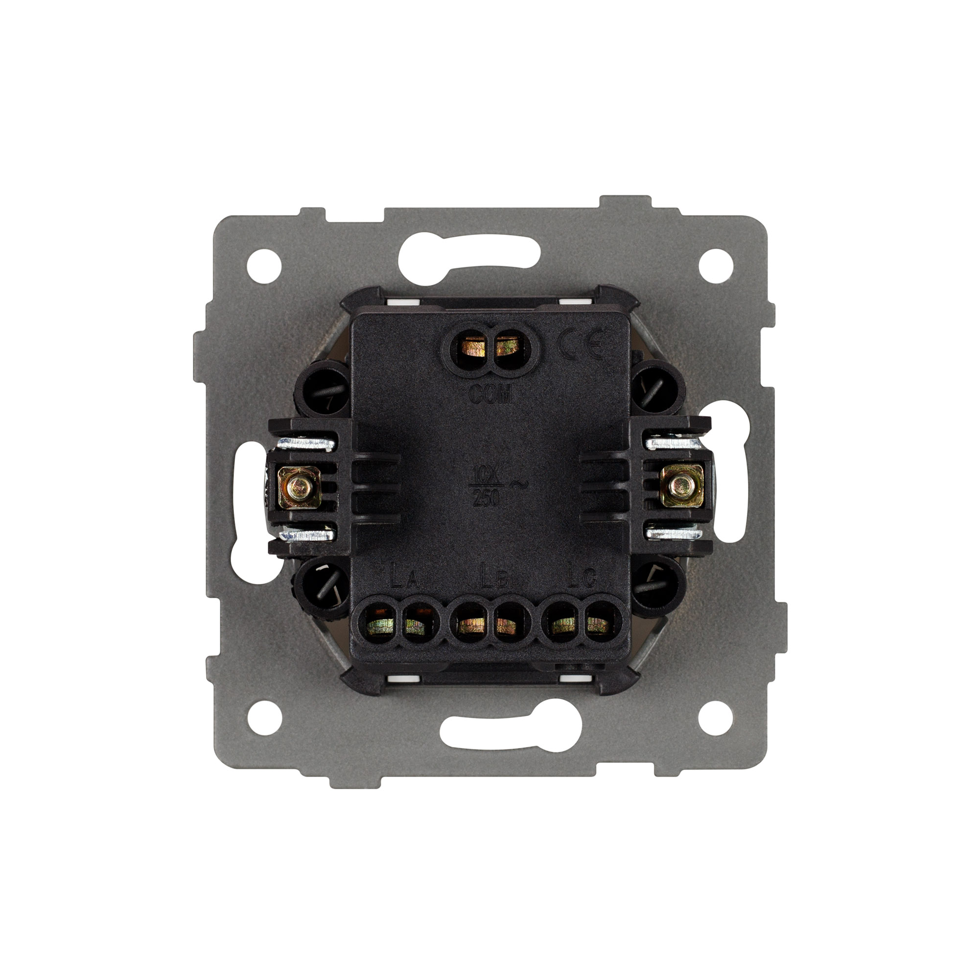 Механизм выключателя света клавишный на 1 пост 3 клавиши (непроходной). Цвет - золотой. Без фронтальной рамки. Уровень пылевлагозащиты IP20. Выключатель устанавливается в стандартный круглый подрозетник.