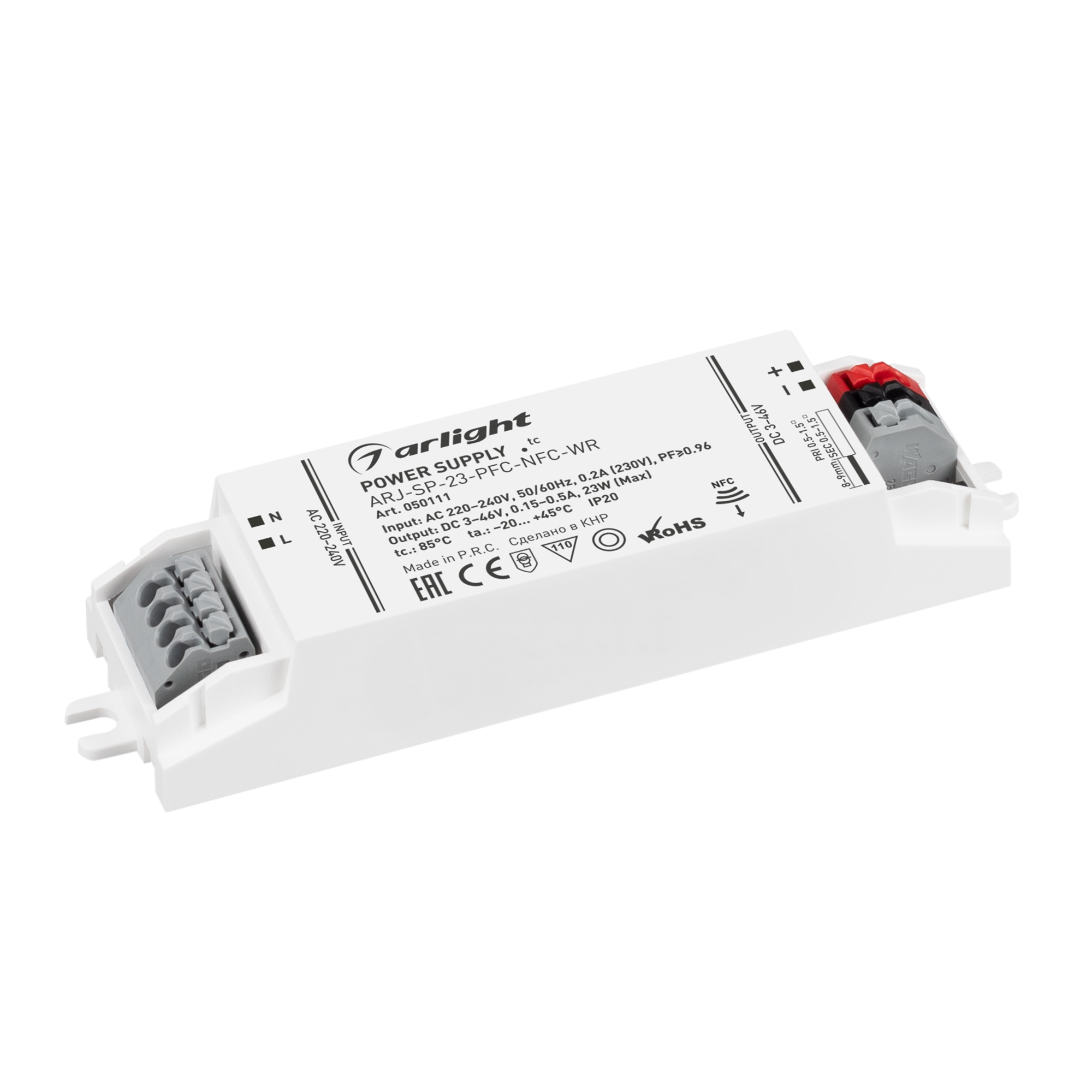 Источник тока серии ARJ-SP-NFC с гальванической развязкой предназначен для питания различных типов светильников и светодиодов. Высокая стабильность выходного тока и низкий коэффициент пульсаций обеспечивают свечение без эффекта мерцания. Наличие технологии NFC позволяет задать необходимые выходные параметры для нагрузки.