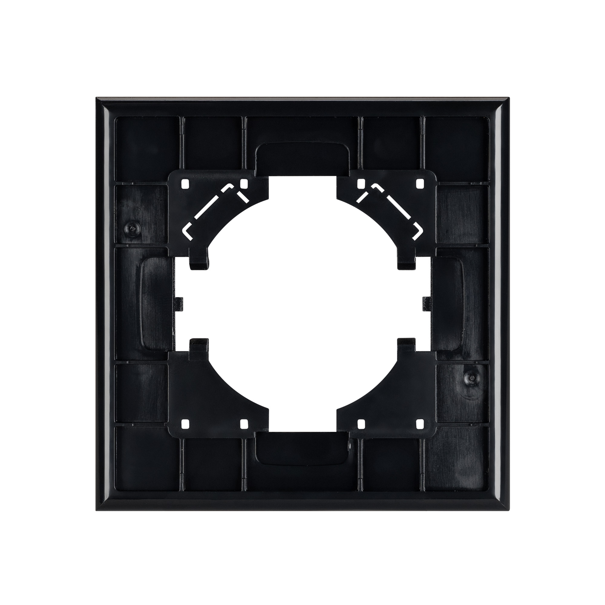 Рамка из серии XSILO изготовлена из комбинации высококачественного пластика и натурального дерева. Корпус выполнен в черном цвете с накладкой из лакированного дерева. Высота изделия в таком случае составляет 7 мм, что позволяет гармонично разместить в интерьер любого современного дизайн-проекта. Предназначена под встраиваемые механизмы.