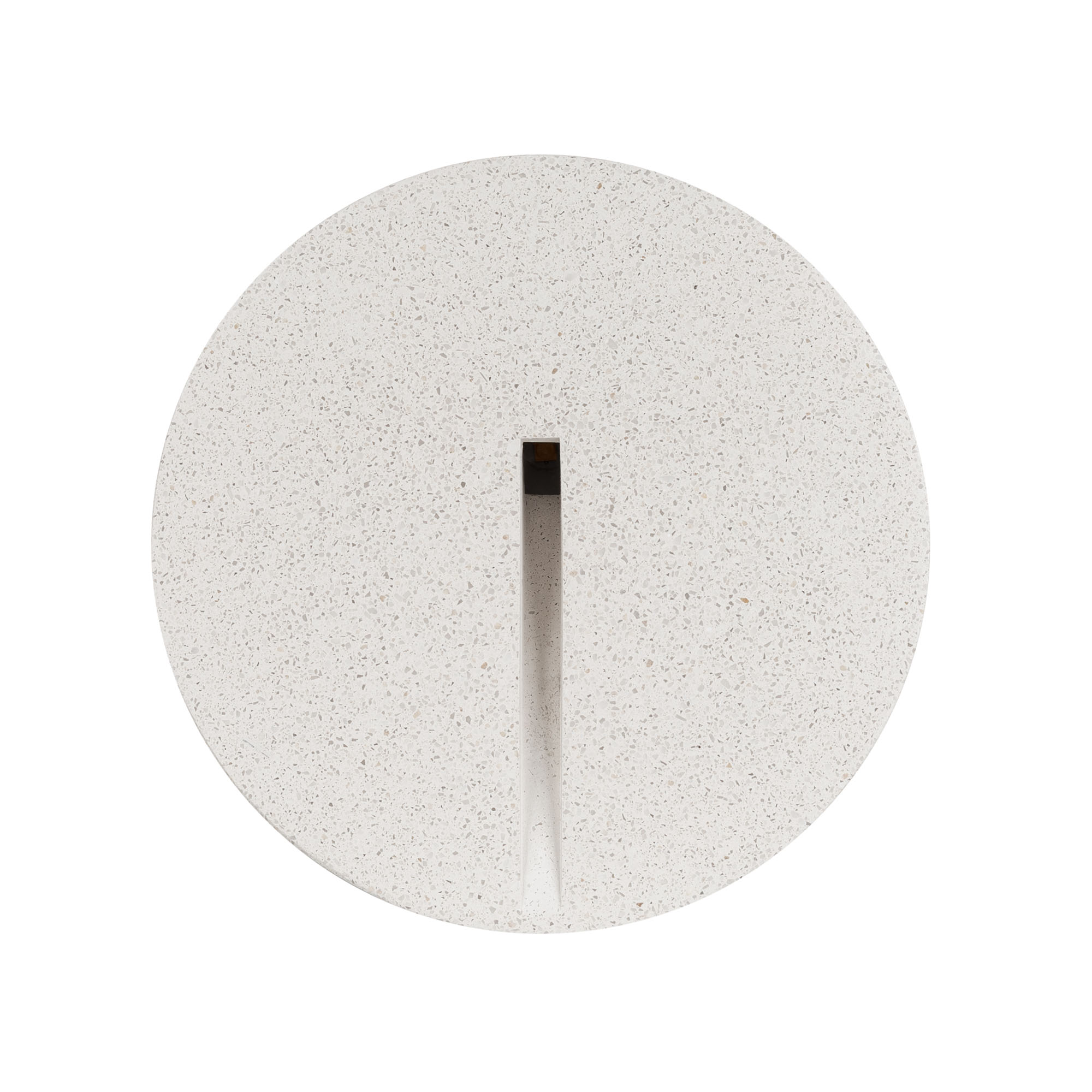 Светодиодный встраиваемый круглый светильник для стен, лестниц. Мощность 3Вт, световой поток 32 лм, теплый 3000К, угол 25x45°, CRI>80, напряжение 230 В. Круглый корпус из бетона белого цвета и алюминия. Степень защиты IP65. Питание AC230V, мощность 3Вт. Размеры DxH 120x76мм. Драйвер встроенный, пульсация <0.5%.