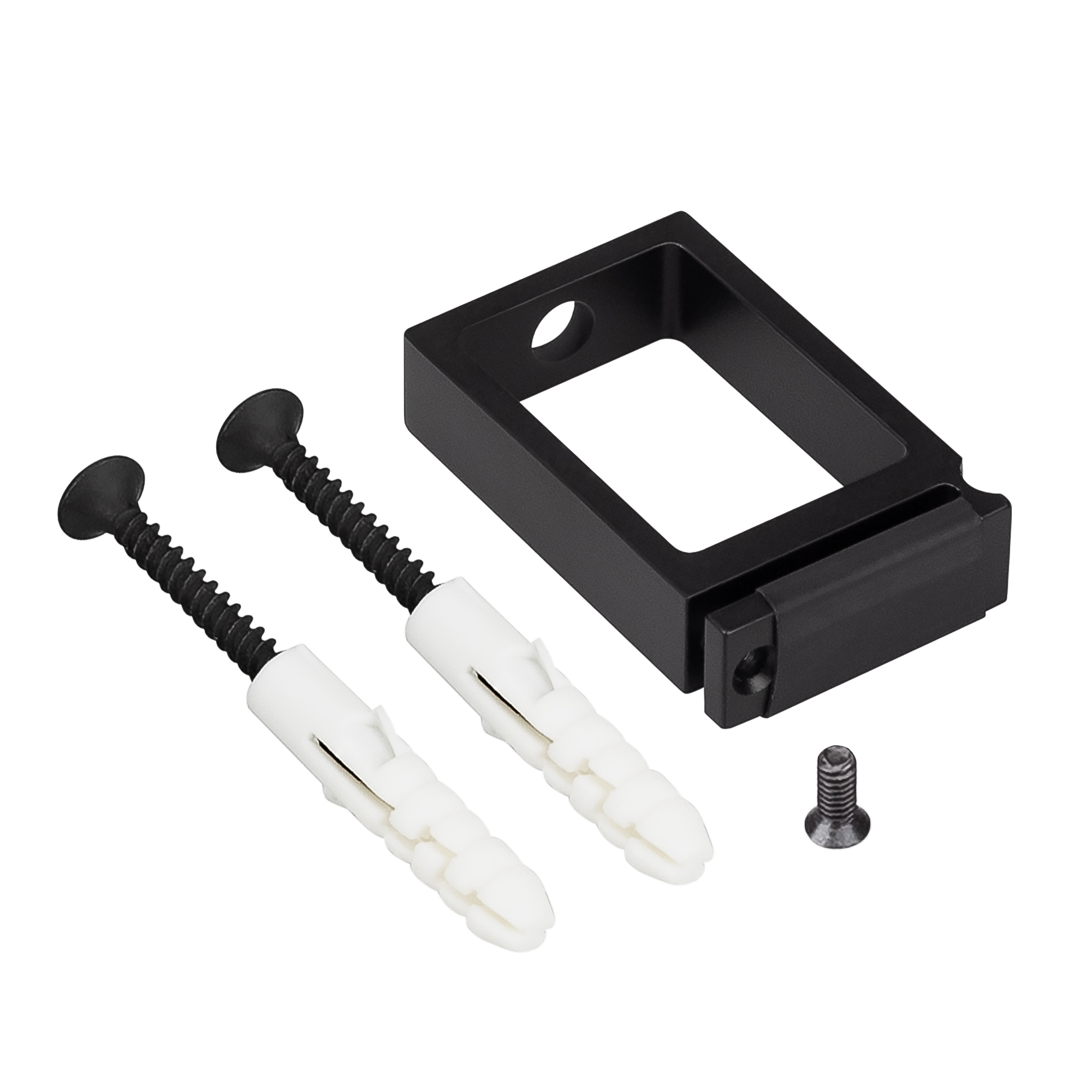 Потолочная крепление в виде проушины черного цвета для подвесного монтажа профиля на токопроводящие ремни. Крепится к потолку. Габаритные размеры составляют 10мм в длину, 28 мм в ширину и 45,5 мм в высоту.