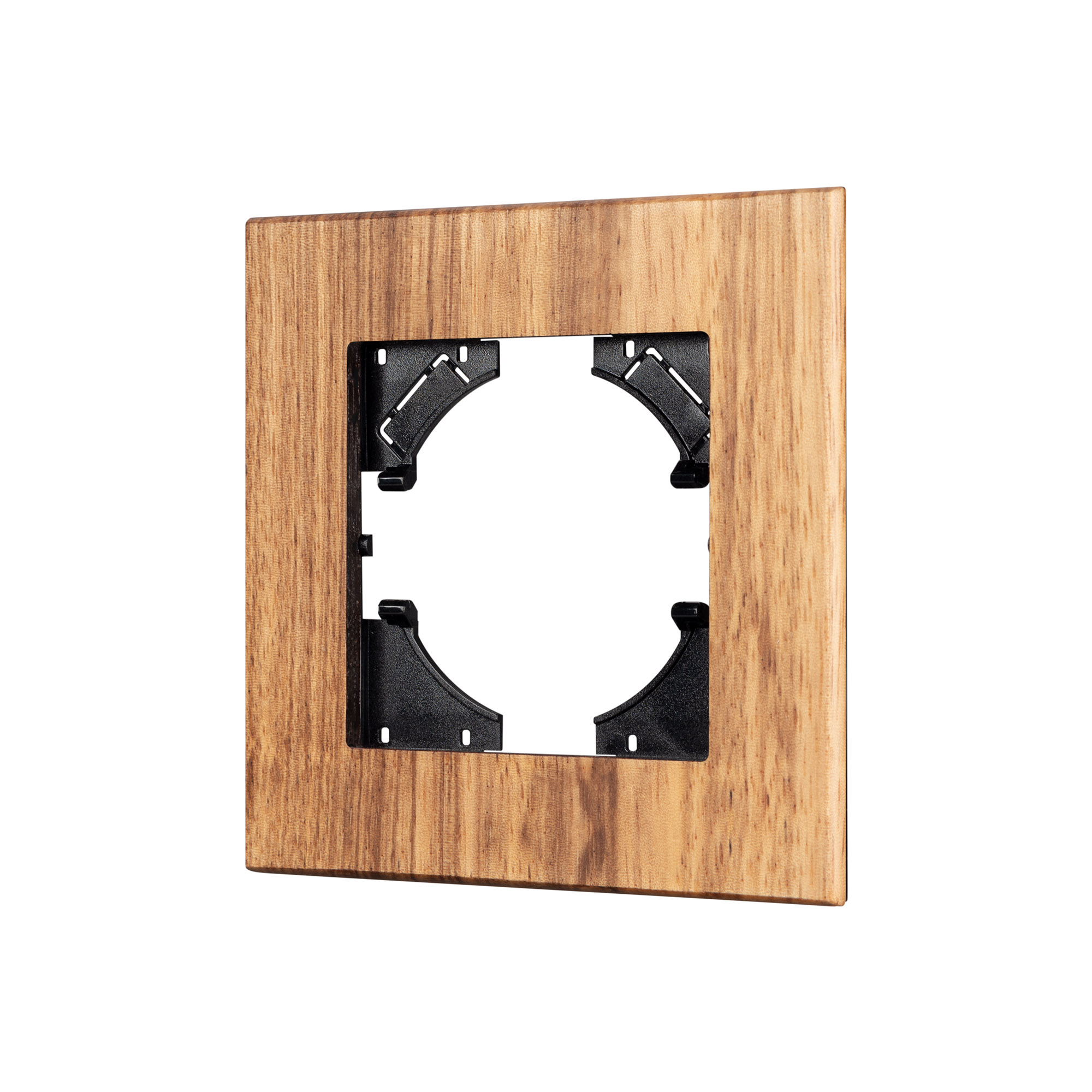 Рамка пластиковая на 1 пост с накладкой из натурального дерева, под встраиваемый механизм. Цвет - натуральное дерево* (осветленное). Среднего уровня герметичности IP20. Ориентация монтажа - горизонтальная (основным ориентиром служат посадочные выступы для накладки механизма).
