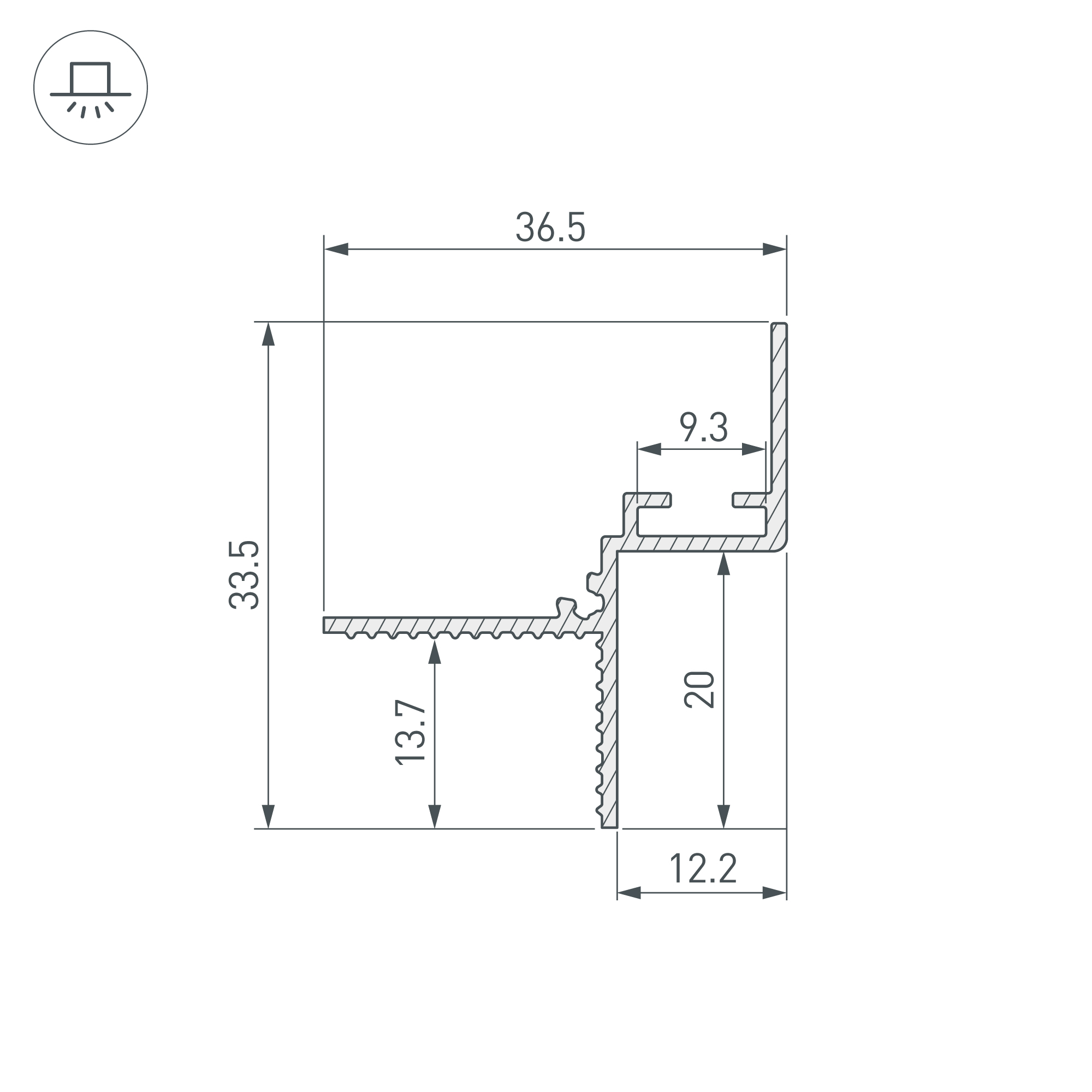 Несветовой профиль для создания теневого зазора 12,2 мм между поверхностью потолка и стены. Создает эффект парящего потолка с четким контуром и небольшой тенью по периметру помещения. Такое решение визуально расширяет пространство и идеально подходит для современного минималистичного интерьера. Встраиваемый алюминиевый анодированный профиль черного цвета со скрытым фланцем устанавливается в потолки и потолочные ниши из гипсокартона толщиной 12,5 мм.