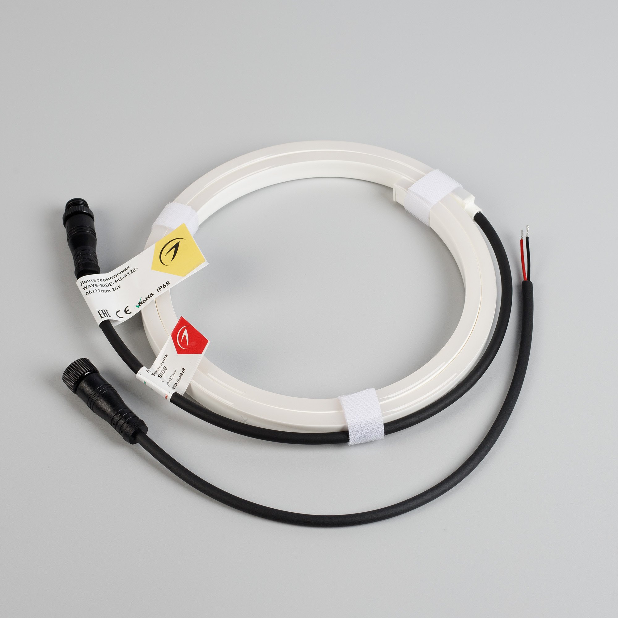 Светодиодная лента герметичная WAVE-SIDE-PU-A120-06x12mm 24V Warm3000 (8 W/m, IP68, 1m, wire x1) (Arlight, Вывод прямой, 3 года)