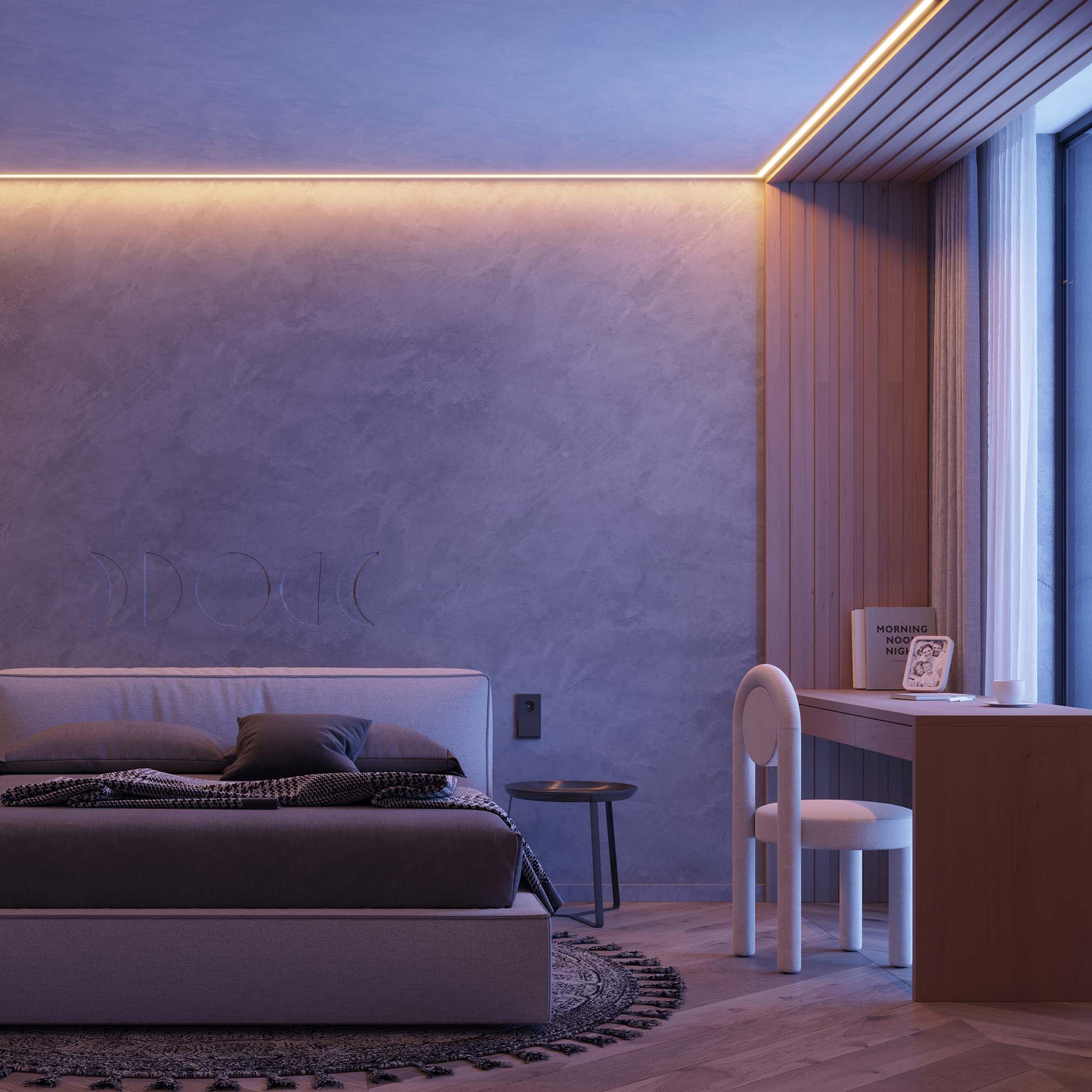Светодиодная лента серии UL A140, шириной 10 мм, мощностью 20 Вт/м, с изменяемым цветом свечения (MIX) в диапазоне от дневного (4000K) до теплого (2400K). Гарантия 7 лет. Напряжение питания 24 В. Светодиоды SMD 2835, 140 шт/м. Высокий индекс цветопередачи CRI>90, обеспечивающий точное восприятие цветов при освещении любых жилых и коммерческих помещений. Минимальный отрезок 100 мм (14 светодиодов). Двухканальная лента с тремя проводами для подключения, управляется MIX-контроллером. Подключение 5 м с одной стороны. Применяется для создания биодинамического освещения, уютной атмосферы, декоративной подсветки элементов интерьера, мебели. Обязательна установка на профиль.