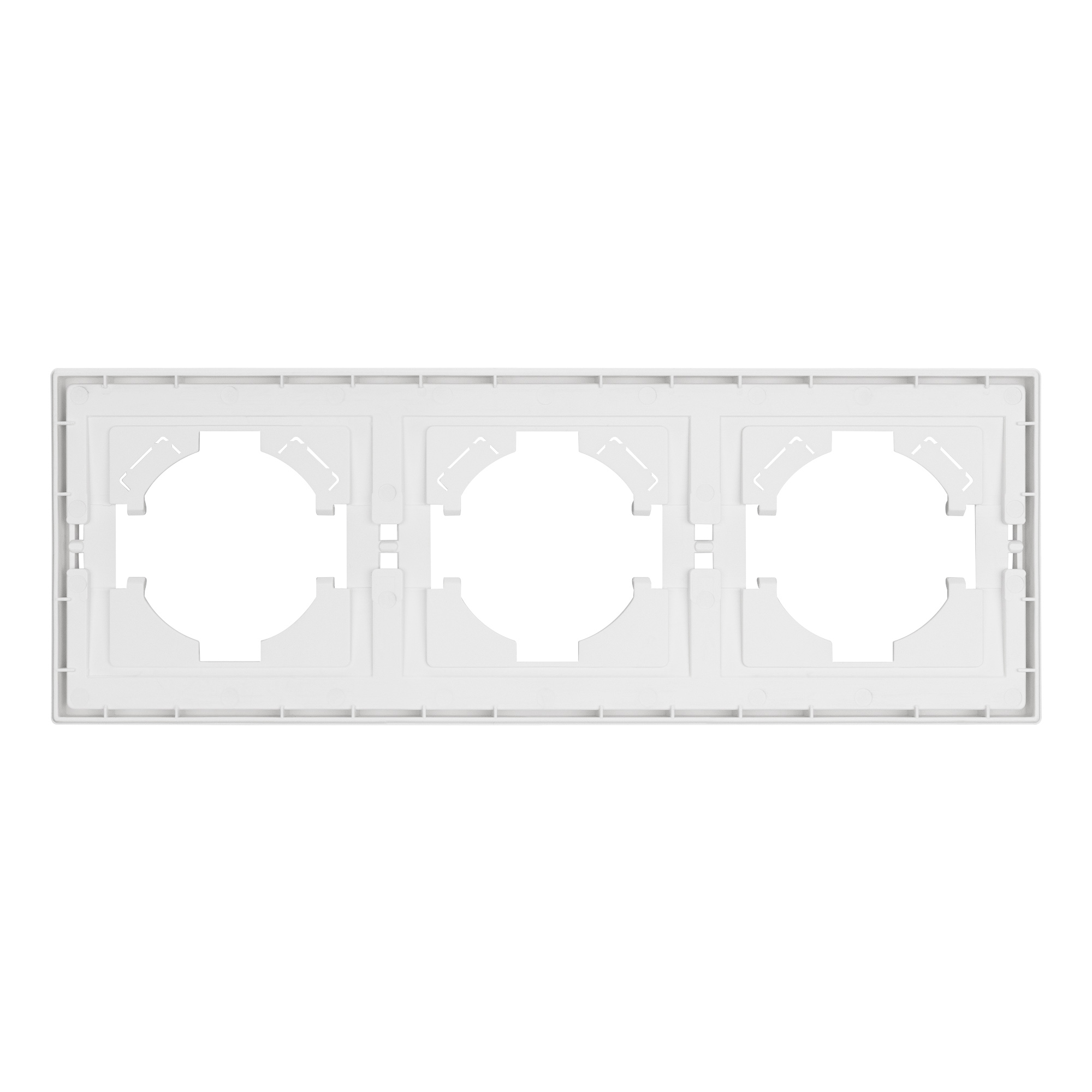 Рамка пластиковая на 3 поста, под встраиваемый механизм. Цвет - белый. Среднего уровня герметичности IP20. Ориентация монтажа горизонтальная. Габаритные размеры: длина 221 мм, ширина 80 мм, высота 9 мм. Гарантийный срок 12 мес.
