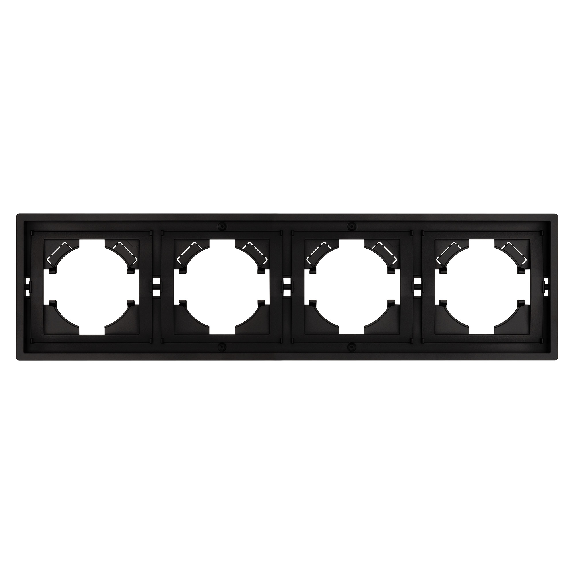 Рамка пластиковая на 4 поста, под встраиваемый механизм. Цвет - черный. Среднего уровня герметичности IP20. Ориентация монтажа горизонтальная. Габаритные размеры: длина 294 мм, ширина 80 мм, высота 9 мм. Гарантийный срок 12 мес.