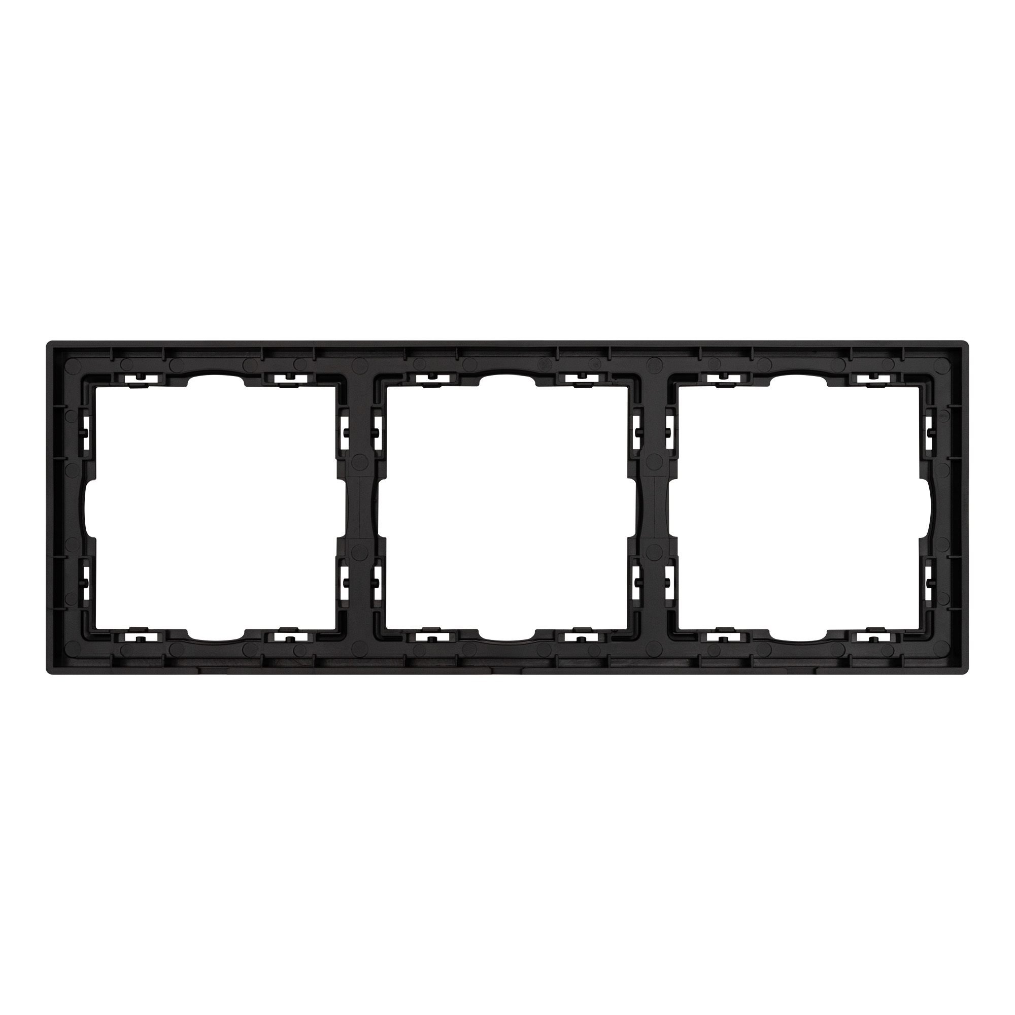 Корпус рамки выполнен в черном цвете и имеет покрытие Soft-Touch, что придает изделию приятные тактильные свойства. Толщина корпуса составляет 8,5 мм, что позволяет эффективно интегрировать рамку в интерьерные решения любого уровня сложности.