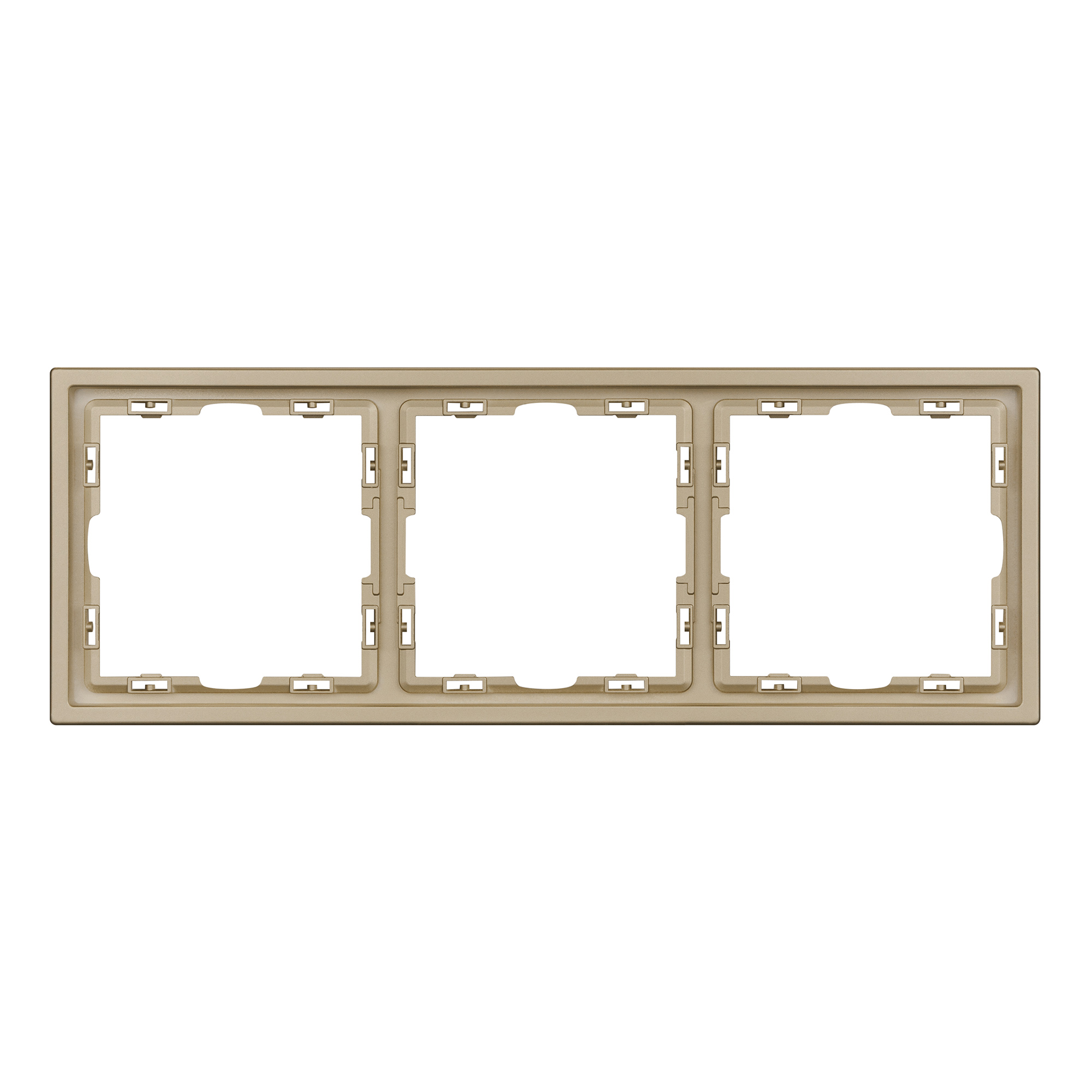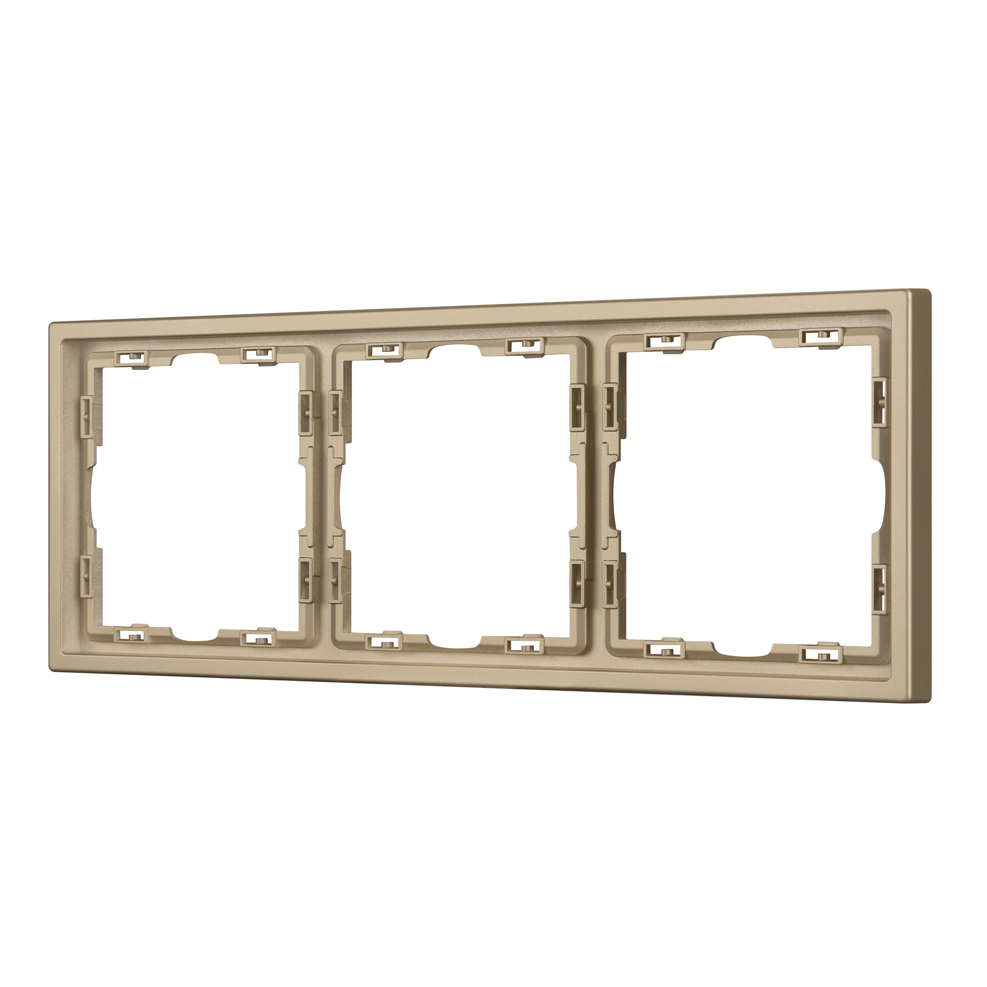 Рамка пластиковая на 3 поста, под встраиваемый механизм. Цвет - золотой, с Soft-Touch покрытием. Среднего уровня герметичности IP20. Ориентация монтажа горизонтальная. Габаритные размеры: длина 223 мм, ширина 81 мм, высота 8.55 мм. Гарантийный срок 12 мес.