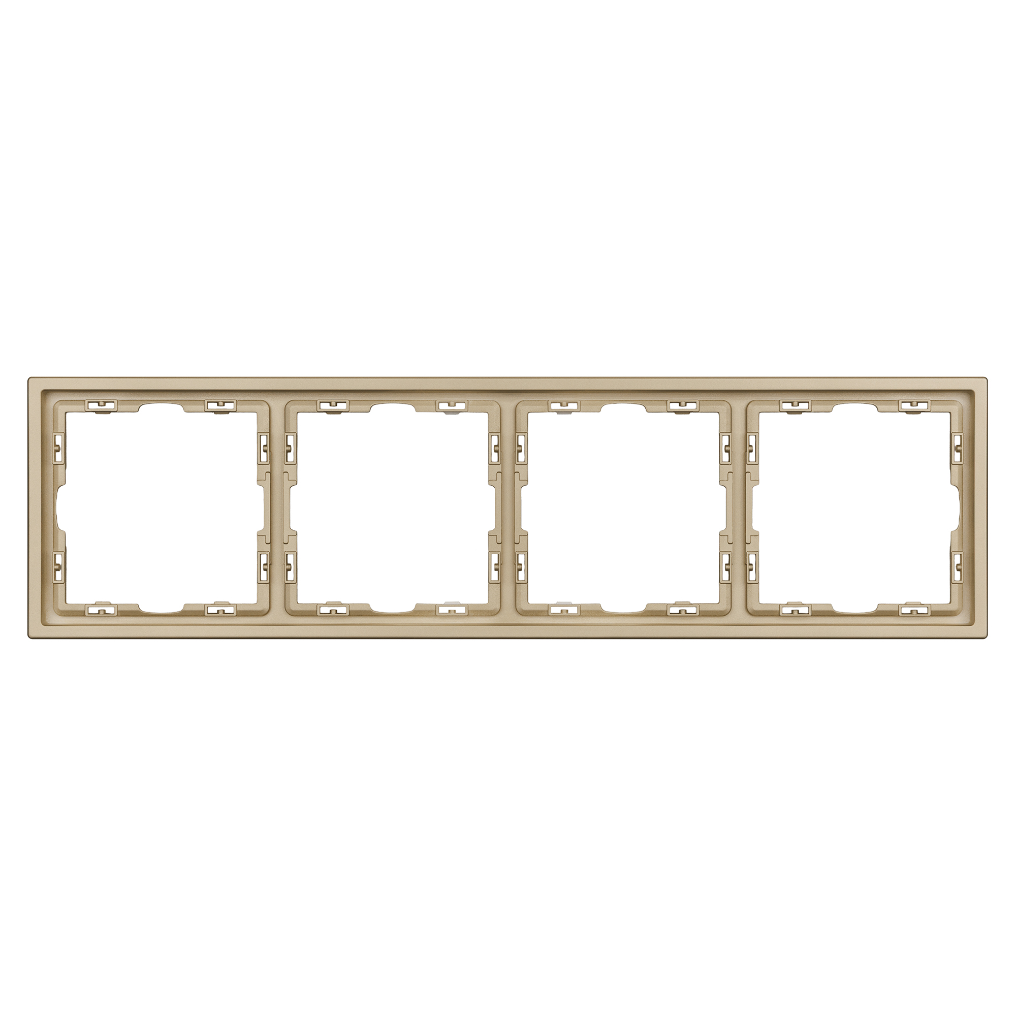Корпус рамки выполнен в золотом цвете и имеет покрытие Soft-Touch, что придает изделию приятные тактильные свойства. Толщина корпуса составляет 8,5 мм, что позволяет эффективно интегрировать рамку в интерьерные решения любого уровня сложности.