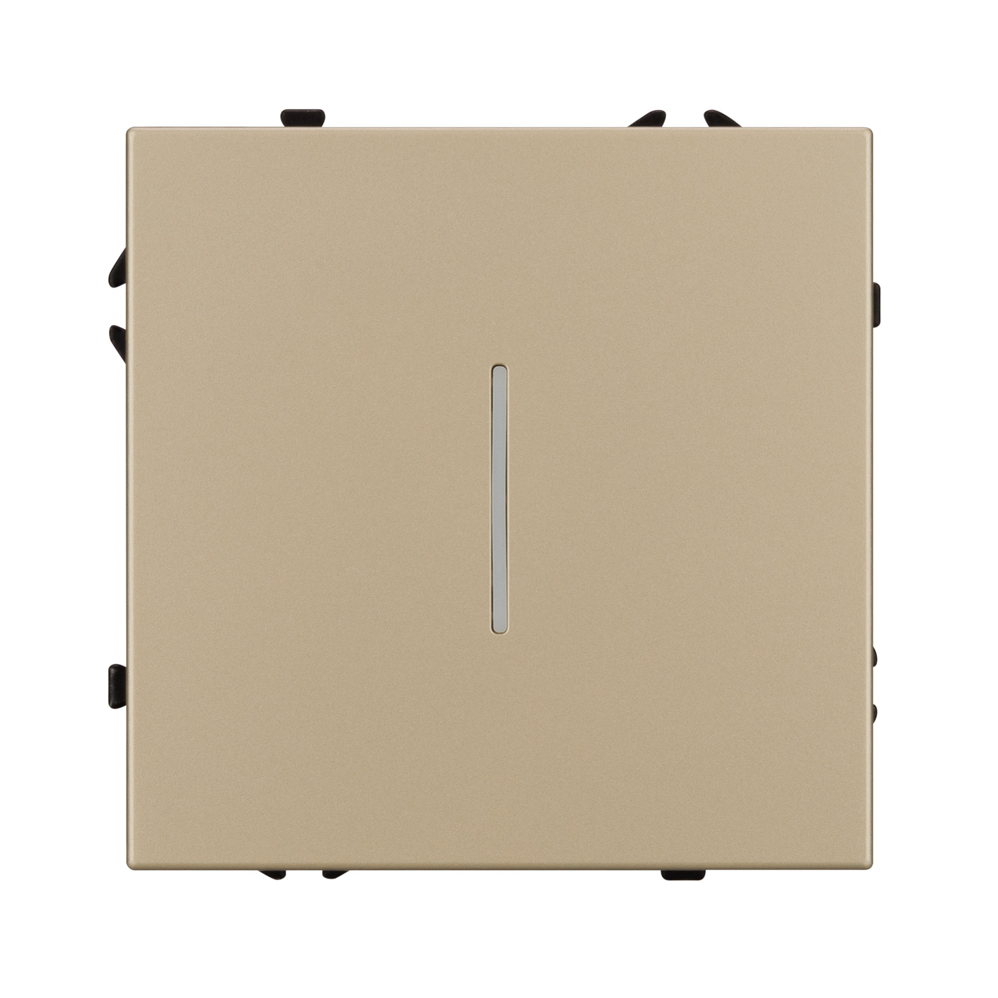 Механизм выключателя света совместим с рамками серии NOBE, создает утонченный минималистичный вид. Скрытый тип монтажа позволяет гармонично встроить в интерьер любого современного дизайн-проекта. Видимая часть механизма выполнена из высококачественного пластика золотого цвета и имеет Soft-Touch покрытие, что придает изделию приятные тактильные ощущения и стильный внешний вид.