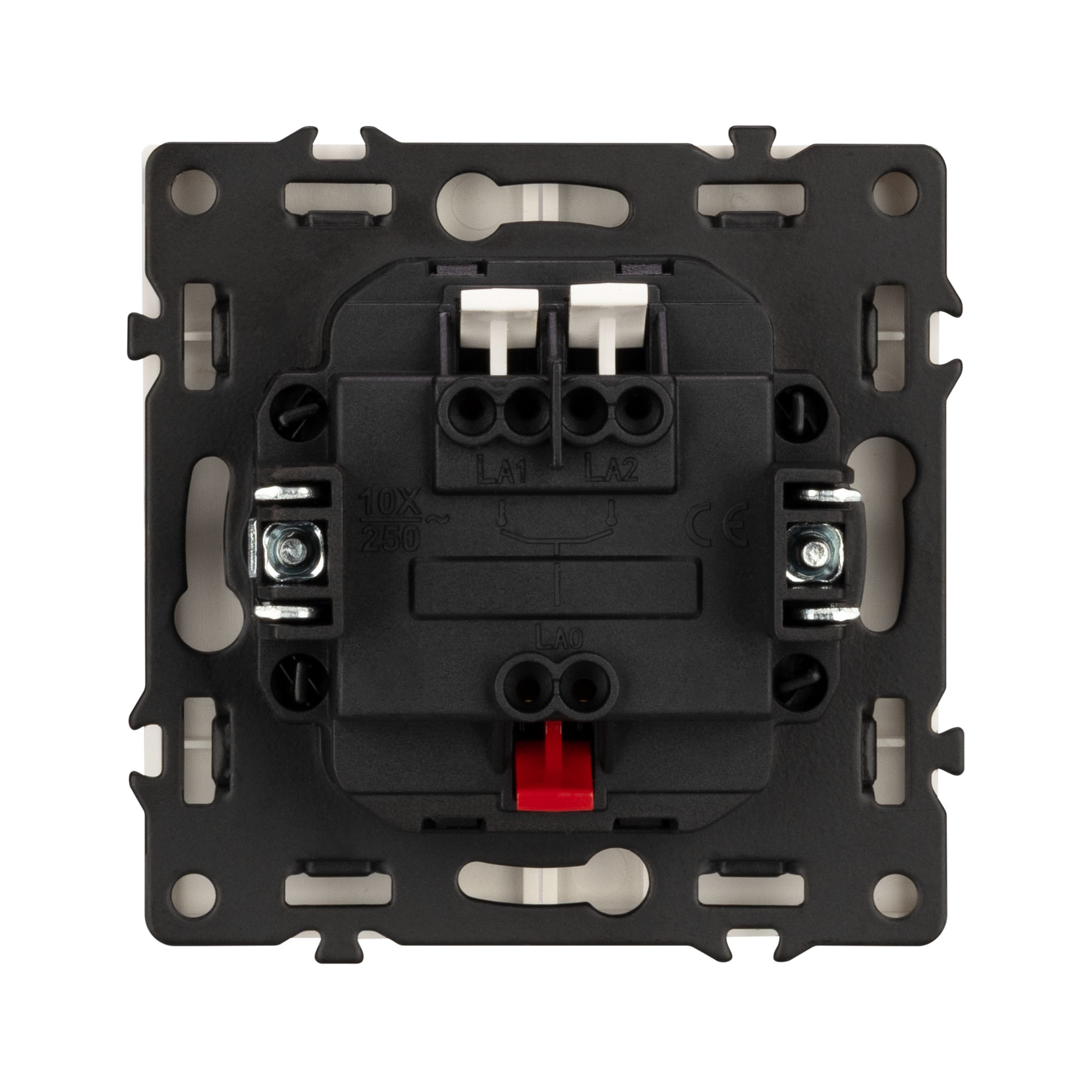 Строгие геометрические линии гармонично сочетаются с функциональностью продуманных механизмов, создавая идеальное решение для дизайн-проектов, где важны как эстетика, так и практичность. Механизм выключателя света совместим с рамками серии NOBE, создает утонченный минималистичный вид. Скрытый тип монтажа позволяет гармонично встроить в интерьер любого современного дизайн-проекта. Видимая часть механизма выполнена из высококачественного пластика золотого цвета и имеет Soft-Touch покрытие, что придает изделию приятные тактильные ощущения и стильный внешний вид. Соединение посредством быстрозажимных контактов, позволяет надежно подсоединить механизм выключателя к питающим элементам, минимизируя затраченное время на монтаж. А усиленные распорные лапки двойного захвата надежно фиксируют механизм в установочном подрозетнике круглого сечения диаметром 60мм. Суппорт окрашен в черный матовый цвет под основу механизма и выполнен из металла толщиной 1,5мм, что обеспечивает безопасность и уверенность в установке. На каждой стороне суппорта размещены фиксирующие элементы, позволяющие комбинировать механизмы в системы до 5 шт как горизонтально, так и вертикально.