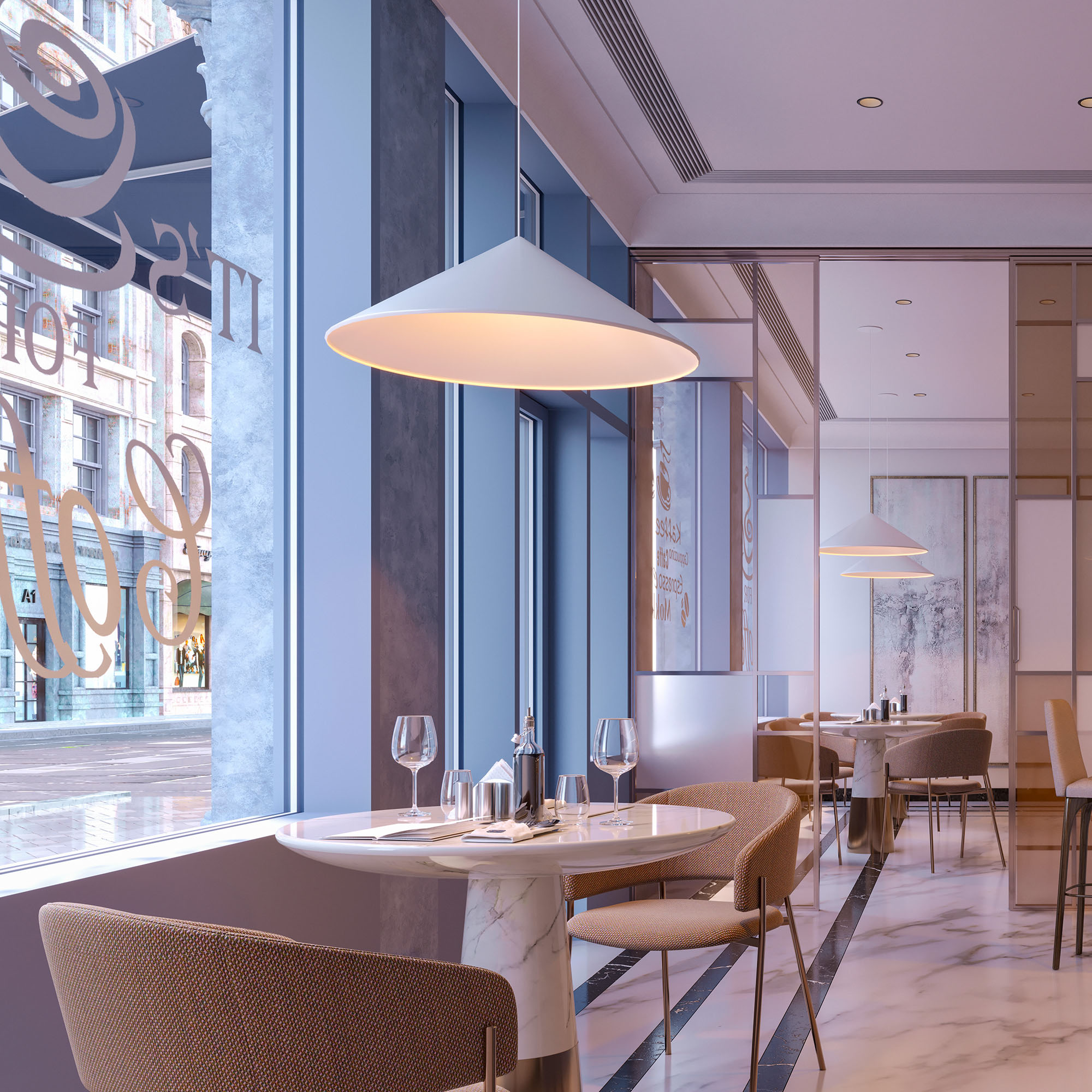 Подвесной светильник. Мощность 14 Вт, св. поток 1200 лм, 74 лм/Вт, тёплый 3000 K, CRI>92, угол 36°, напряжение питания 230 В. Белый корпус из алюминия в форме конуса с белой внутренней поверхностью, линза-рассеиватель из PMMA, степень защиты IP20. Размер: диаметр 550 мм, высота 340 мм. Монтаж подвесной, длина подвеса 2000 мм, регулируемая. В комплекте 2 вида чаш. Габариты встраиваемой чаши: Ø 80x23 мм. Габариты накладной чаши Ø140x55 мм. Драйвер 27-42 В, 350 мА, пульсация <1%. Управление по TRIAC.