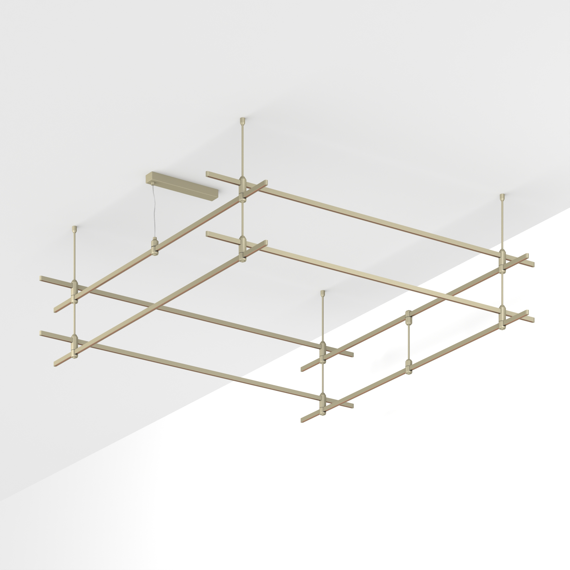 Подвесная конструкция APRIORI, форма квадрат-2. В комплекте треки с аксессуарами и жесткими подвесами длиной 400 мм. DC48V. Материал алюминий, цвет серо-оливковый. Размер ДxШxВ: 2000x2000x300мм. Светильники и источники питания приобретаются отдельно.