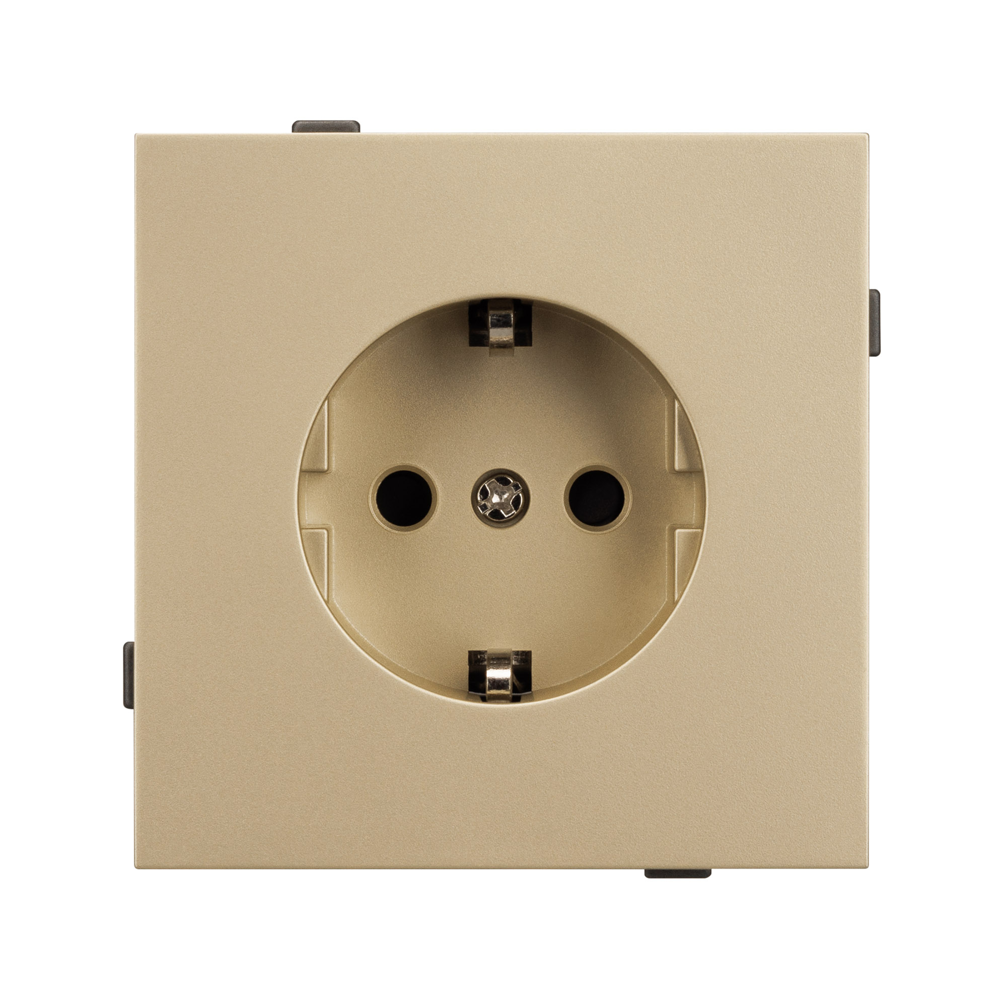 Механизм розетки с заземлением на 1 пост. Цвет - золотой, с Soft-Touch покрытием. Без фронтальной рамки. Уровень пылевлагозащиты IP20. Розетка устанавливается в стандартный подрозетник круглого сечения диаметром 60мм.