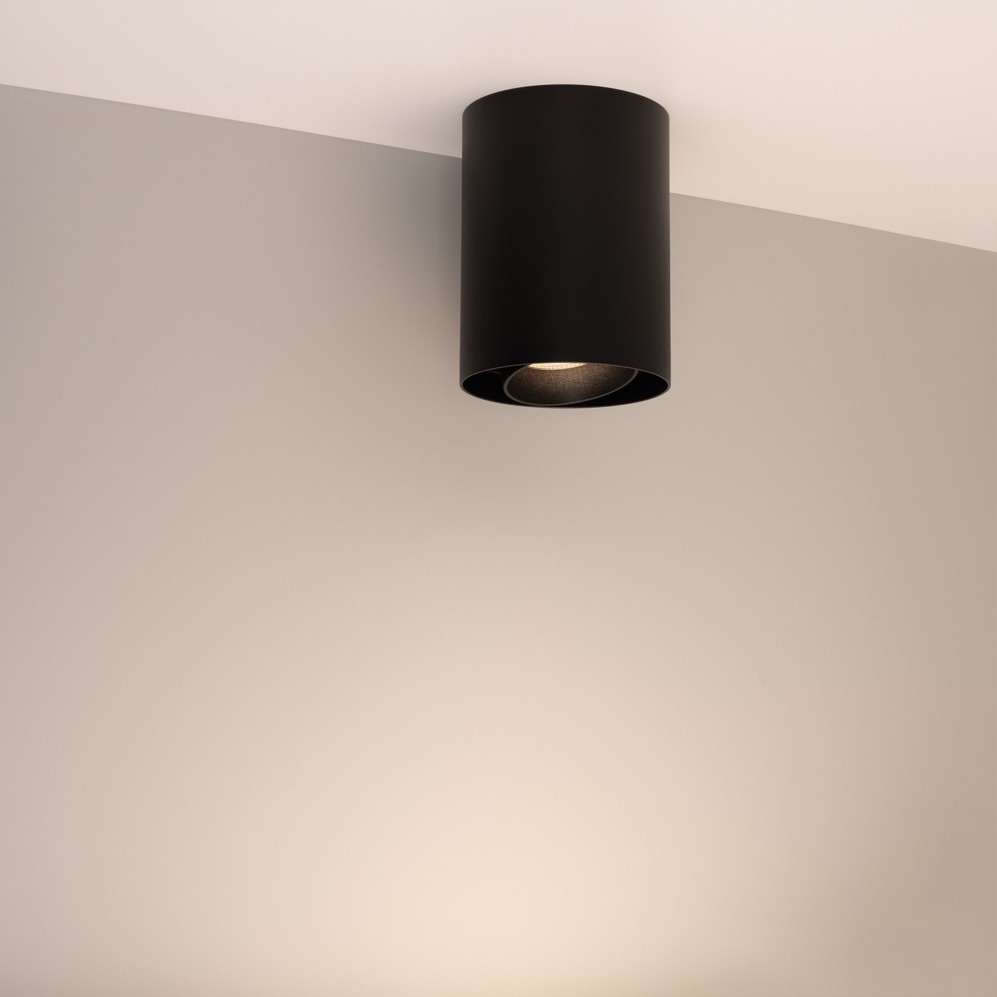 Накладной интерьерный светильник. Мощность 18 Вт, св. поток 1700 лм, 99 лм/Вт, дневной 4000 K, CRI>90, угол 36°, регулируемое направление луча 40°(20+20), поворотный световой модуль вокруг своей оси на 340°, UGR <11, напряжение питания 230 В. Чёрный круглый корпус из алюминия, степень защиты IP54. Размер: диаметр 110 мм, высота 145 мм. Монтаж накладной. Драйвер 27-43 В, 450 мА, пульсация <1%.