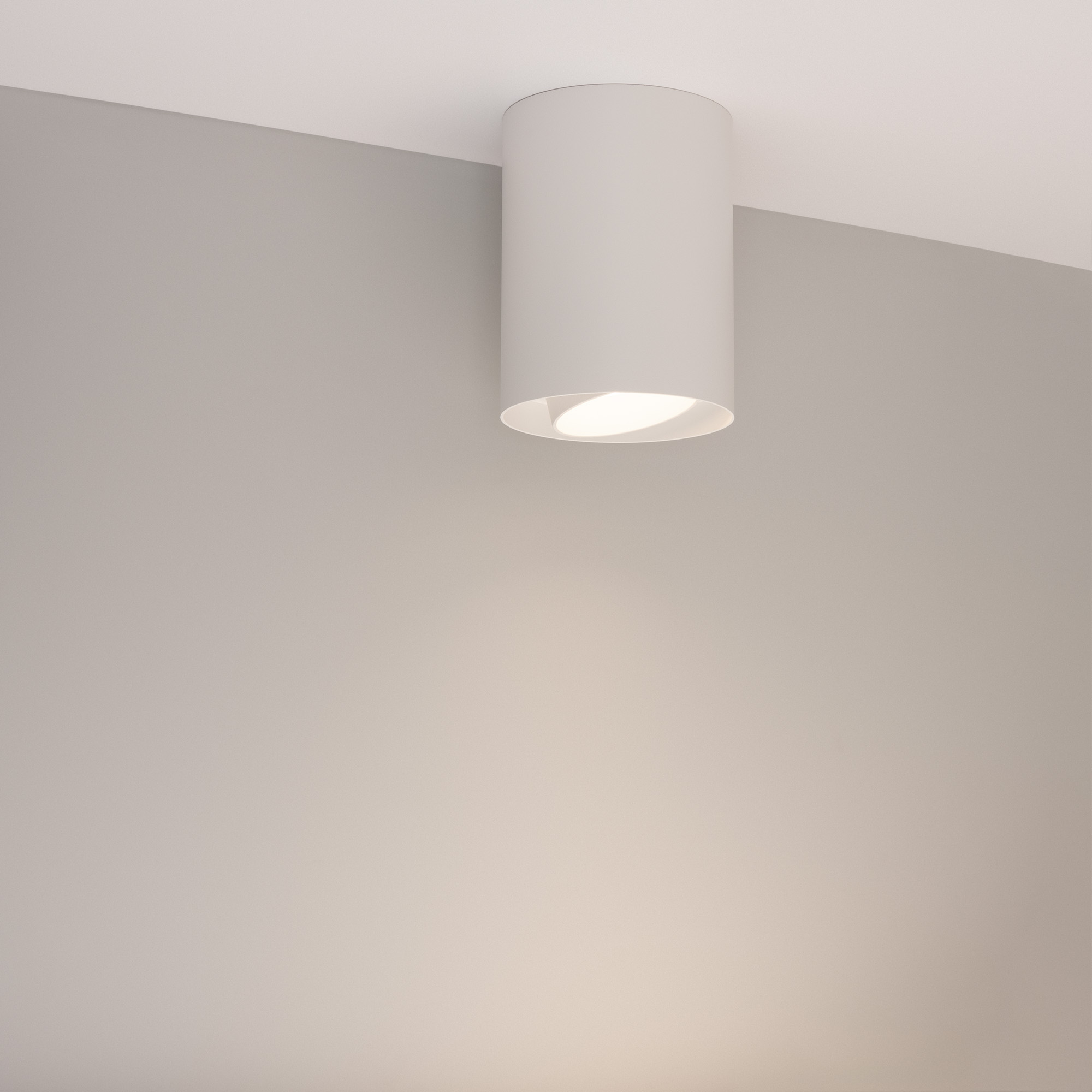Накладной интерьерный светильник. Мощность 18 Вт, св. поток 1700 лм, 99 лм/Вт, дневной 4000 K, CRI>90, угол 50°, регулируемое направление луча 40°(20+20), поворотный световой модуль вокруг своей оси на 340°, UGR <11, напряжение питания 230 В. Белый круглый корпус из алюминия, степень защиты IP54. Размер: диаметр 110 мм, высота 145 мм. Монтаж накладной. Драйвер 27-43 В, 450 мА, пульсация <1%.