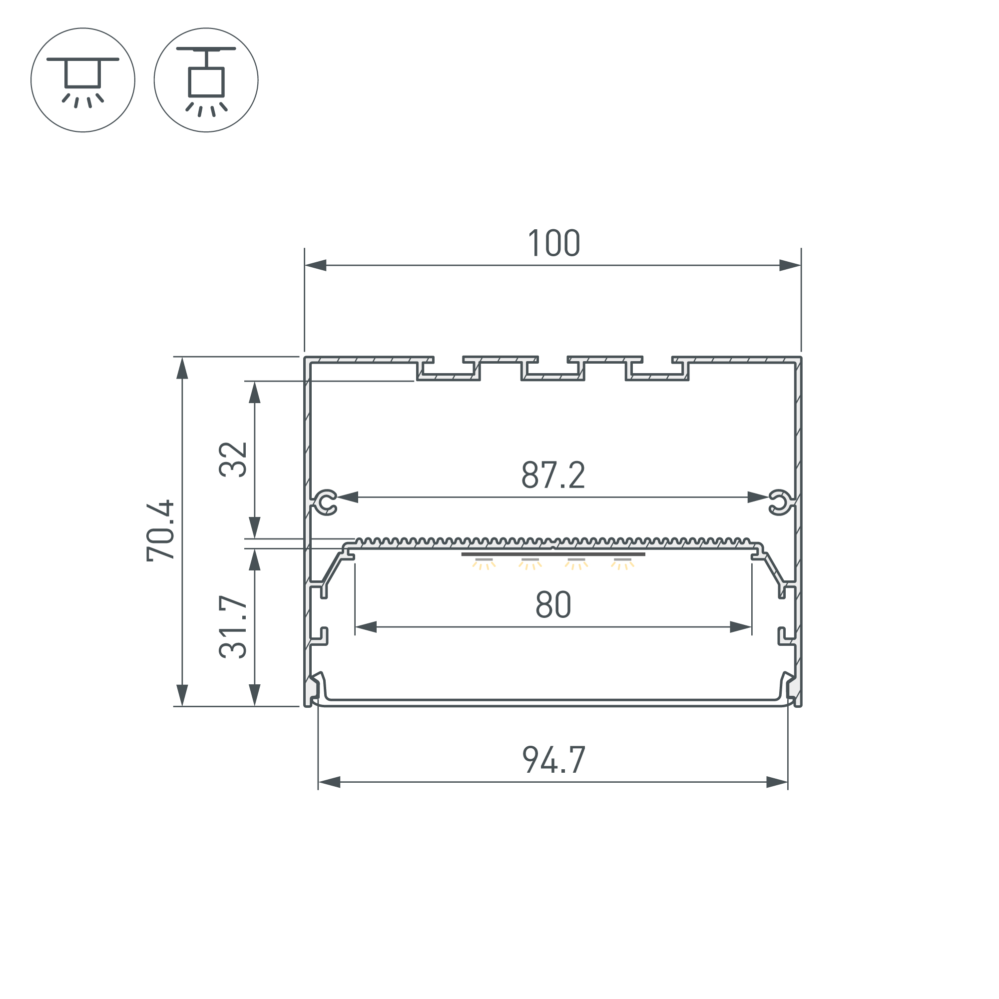 Накладной/подвесной профиль из алюминия черного цвета (RAL9004, порошковая окраска) для создания линейных светильников. Подходит для основного освещения. Габаритные размеры профиля составляют 2000 мм в длину, 100 мм в ширину и 70,4 мм в высоту. Площадка для лент позволяет использовать светодиодную ленту шириной до 80 мм и мощностью до 89 Вт/м. Размер отсека для блока питания: 87,2х32 мм. Это обеспечивает гибкость в выборе светодиодных лент и создает потрясающие световые решения. Экран, заглушки и другие аксессуары не включены в комплект и приобретаются отдельно. Цена указана за 1 метр профиля. Отличное решение для создания современных световых проектов.