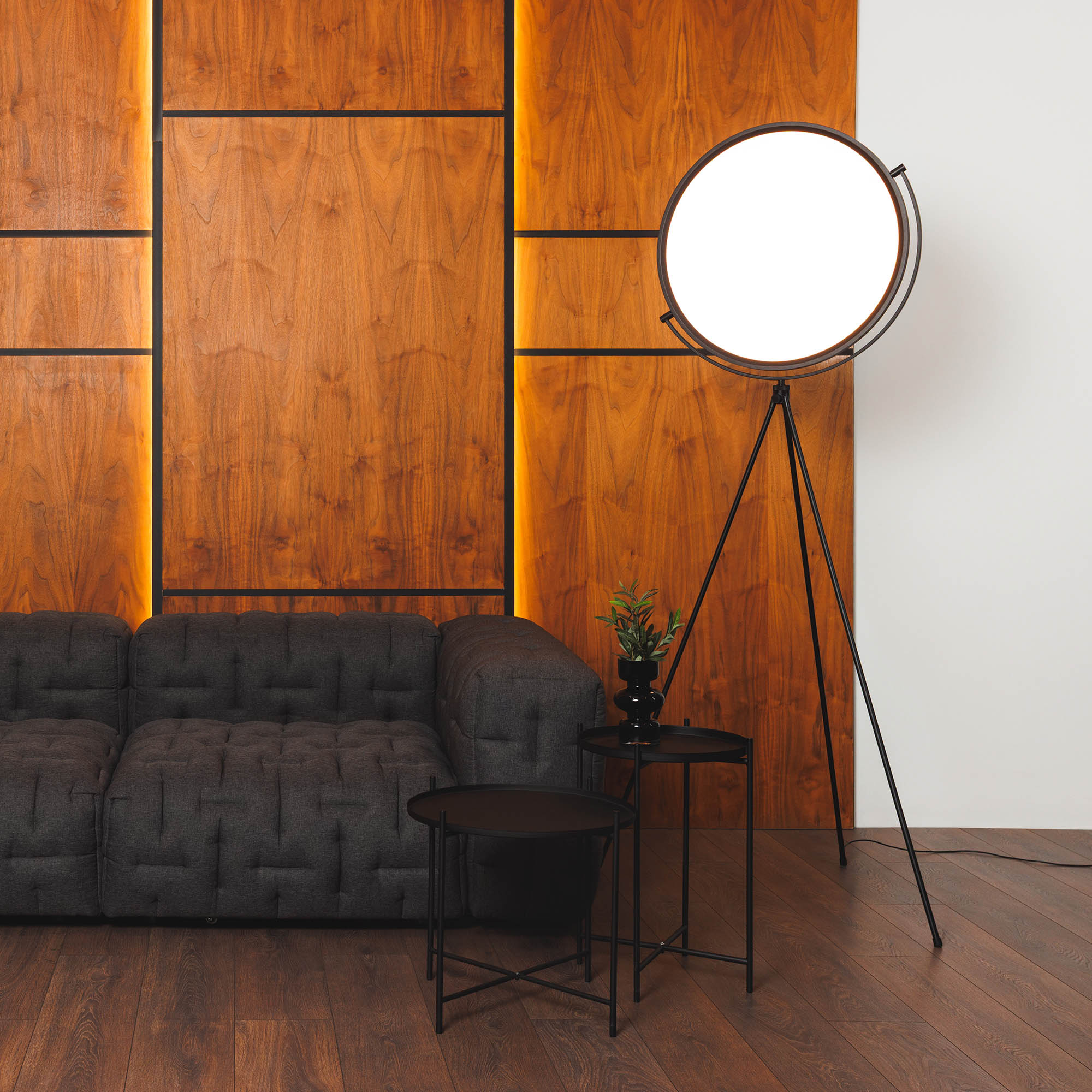 Декоративный напольный светильник LUNAR-FLOOR мощностью 35 Вт с углом излучения 120 градусов используется в качестве стильного элемента интерьера, а также для местного освещения в жилых или коммерческих помещениях. Высокий индекс цветопередачи >CRI90 и световой поток от 72Лм до 1523Лм обеспечивают качественное направленное освещение. Световой поток и цветовую температуру можно регулировать с помощью сенсорного диммера-кнопки, расположенной на штоке. Поворотный модуль в форме луны позволяет легко менять направление света. Низкий уровень пульсации создает равномерное свечение без мерцаний. Степень защиты корпуса на уровне IP20 позволяет применять светильник внутри помещений, где отсутствует контакт с водой. За счет сетевого адаптера, входящего в комплект, светильник быстро подключается к сети 230В.
