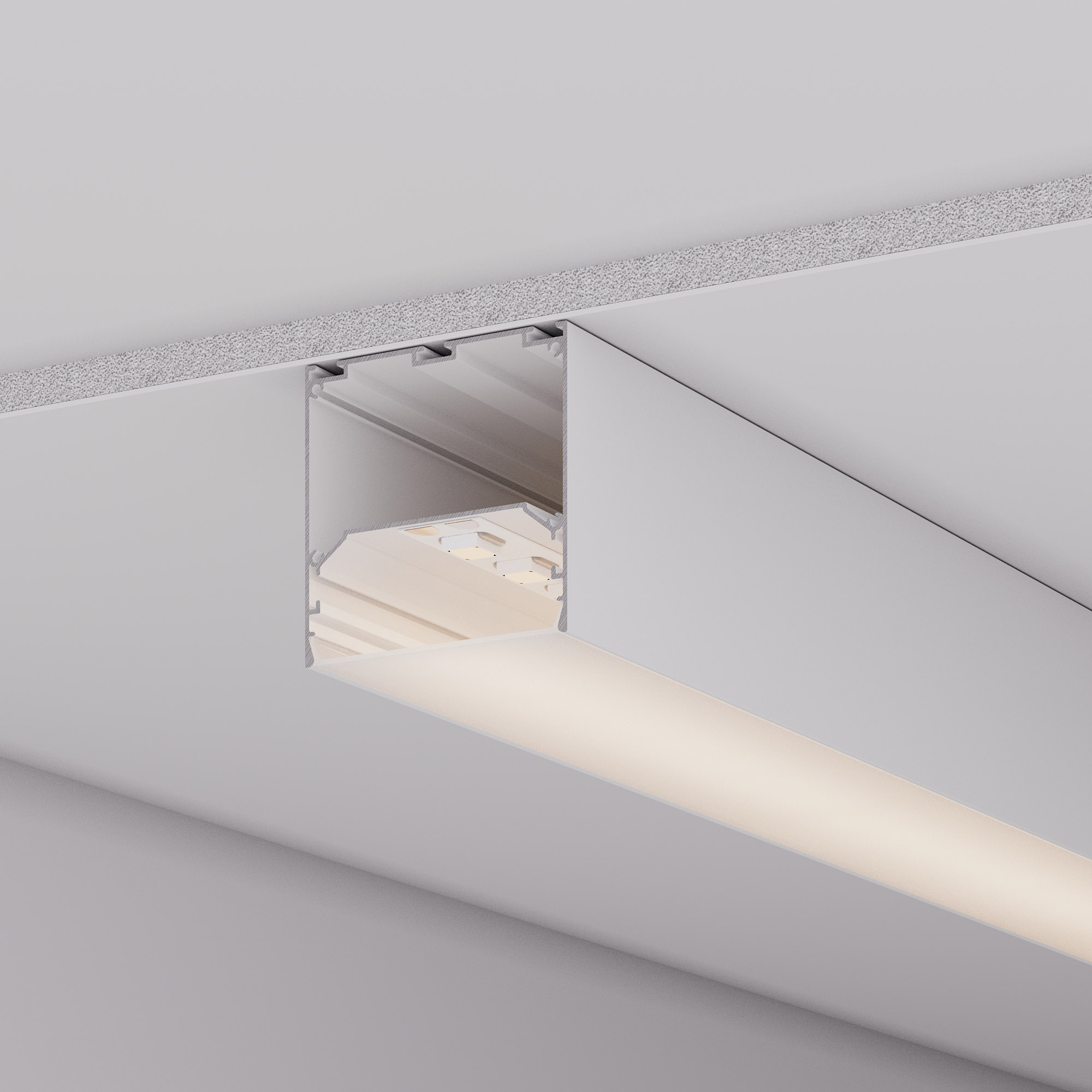 Габаритные размеры профиля составляют 2000 мм в длину, 75 мм в ширину и 75 мм в высоту. Площадка для установки светодиодных лент позволяет использовать ленту шириной до 50 мм и мощностью до 78 Вт/м. Это обеспечивает гибкость в выборе светодиодных лент и создает потрясающие световые решения.