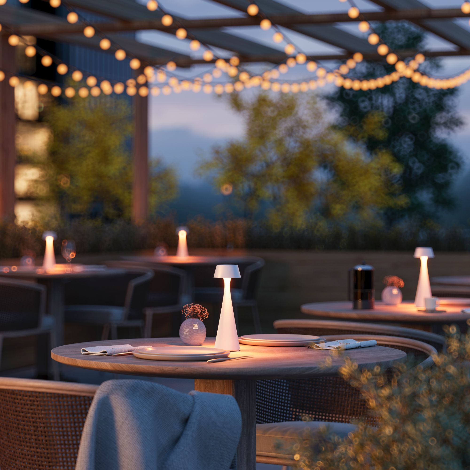 Настольный светодиодный светильник TOMMY со встроенным аккумулятором 2 Вт. Светильник с регулируемым цветом свечения (2200-2700-3000 К) и световым потоком 110-130 лм станет отличным решением для локальной подсветки. Благодаря степени защиты IP54 светильник можно использовать как в помещениях, так и под открытым небом. Встроенная Li-ion аккумуляторная батарея емкостью 2x2200 мАч способна обеспечить до 100 часов автономной работы светильника. Последовательное нажатие сенсорной кнопки позволяет включить/выключить светильник и выставить нужный уровень яркости и цвета свечения. Зарядка осуществляется через зарядную подставку, которая входит в стандартный комплект поставки.