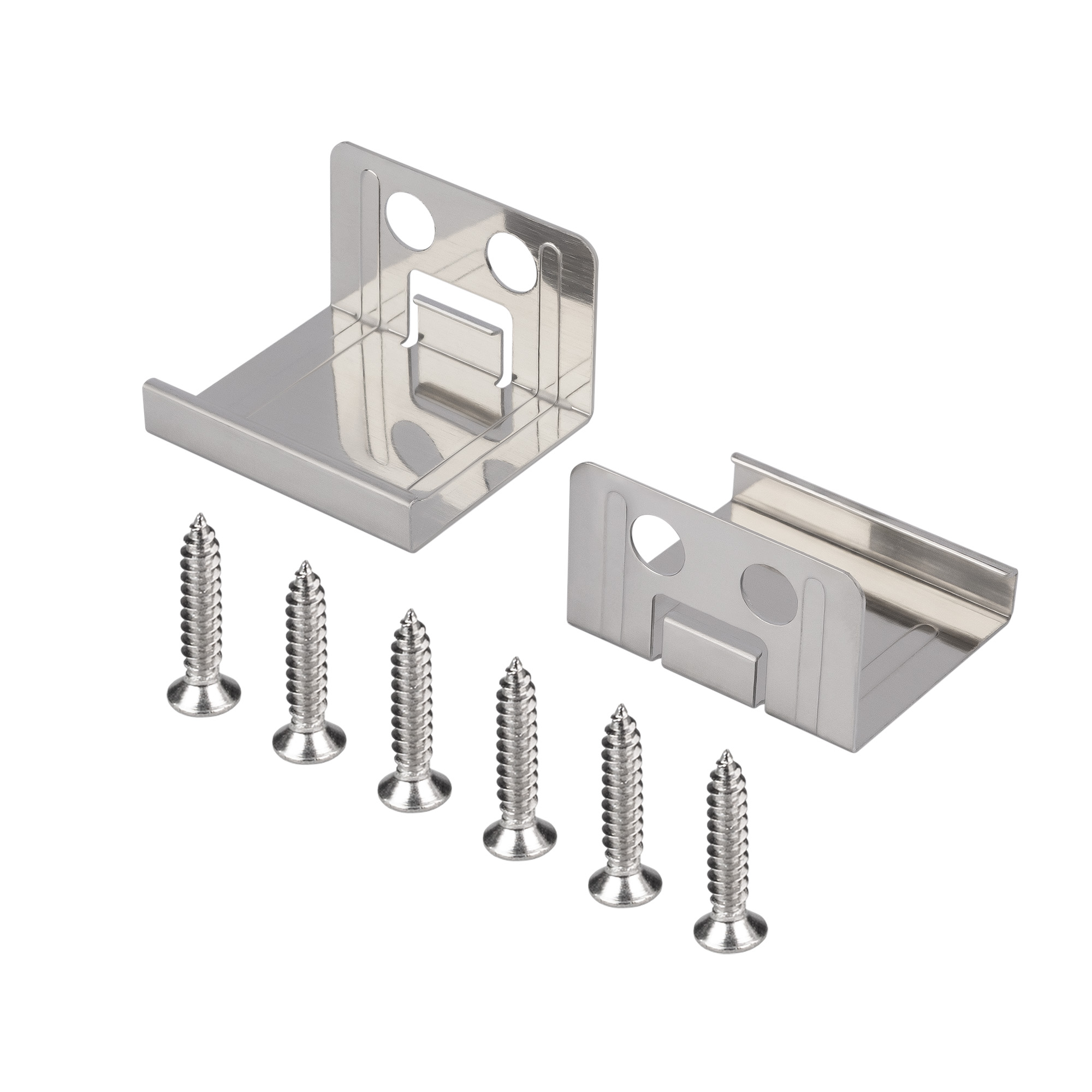 Комплект держателей из нержавеющей стали для крепления профиля SL-SLIM20-H13, SL-SLIM20-H20 к стене (направление свечения параллельно поверхности). В комплекте 2 штуки. Цена за комплект.