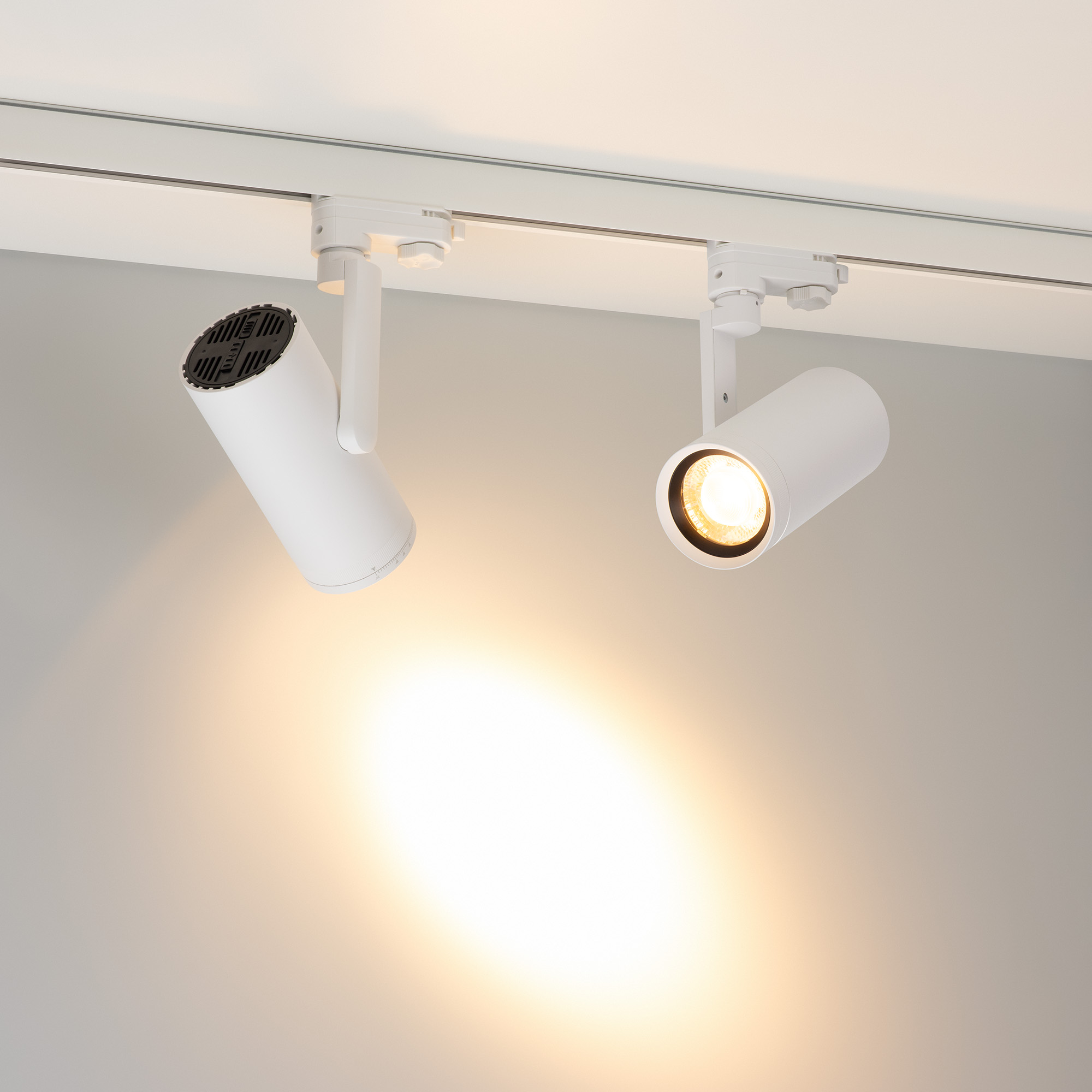 Трековый светильник URANUS с изменяемой мощностью 18/25Вт (при помощи переключателя на корпусе) предназначен для акцентного освещения общественных, коммерческих и торговых помещений. Возможность переключения цветовой температуры на корпусе светильника в диапазоне 2700K/3000K/3500K/4000K/5700K, а также регулируемый угол излучения 20-50° позволит эффективно подсветить различные зоны в помещении, используя только один вид светильника. Боковое крепление светового модуля увеличивает угол наклона и поворота корпуса светильника, позволяя мгновенно менять световые акценты.