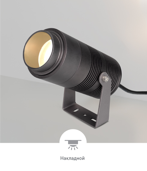 Уличный светодиодный прожектор с регулируемым углом излучения для локальной подсветки элементов фасадов зданий и сооружений, малых архитектурных форм, деревьев и зеленых насаждений.
