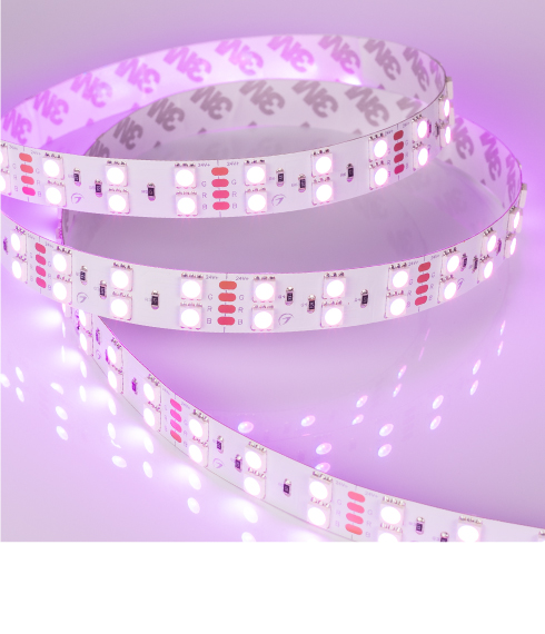 Мультицветные ленты, серия B120. Тип светодиодов 5060 (B), 120 светодиодов на 1 метр, широкие 15mm. Мультицветная подсветка ниш, декора. Световые линии с изменяемым цветом свечения.