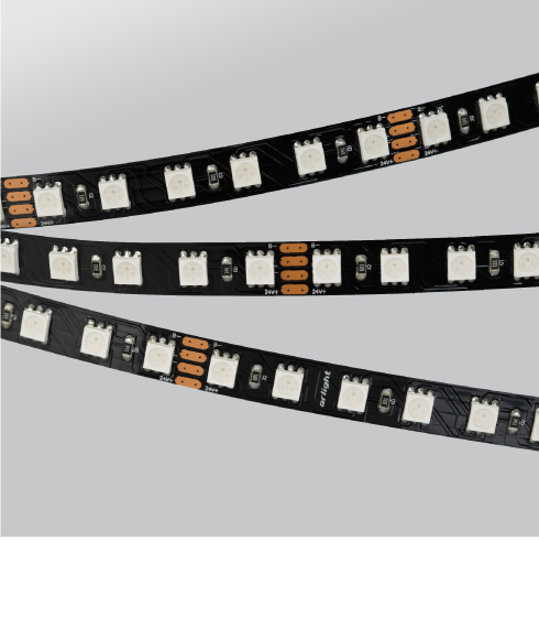 Мультицветные ленты, серия B84. Тип светодиодов 5060 (B), 84 светодиода на 1 метр. Мультицветная подсветка ниш, декора. Световые линии с изменяемым цветом свечения.