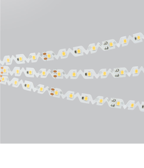 Ленты с изгибом на плоскости, серия A80. Тип светодиодов 2835/3528 (A), 80 светодиодов на 1 метр. Гибкая лента с фигурной платой в форме волны, легко изгибается на плоскости.