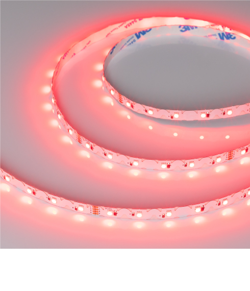 Мультицветная лента линейки RZ со специальной формой платы в виде волны, позволяющей изгибать ленту на плоскости, серия A60. Тип светодиодов 2835 (A), 60 светодиодов на 1 метр. Мультицветная подсветка ниш, декора, витрин и вывесок, рекламных конструкций, букв, ниш, криволинейных форм. Световые линии с изменяемым цветом свечения.