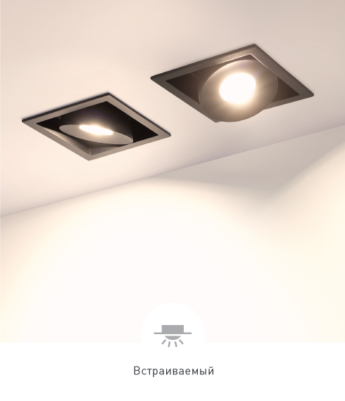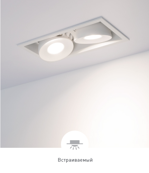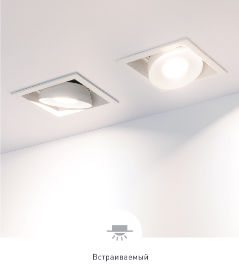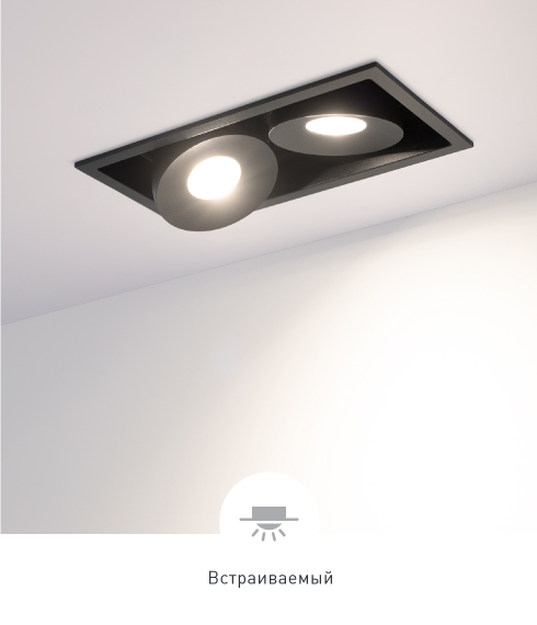 3 типа светильников с независимыми световыми модулями: одинарные круглые, одинарные квадратные и двойные прямоугольные. Черные и белые корпуса мощностью 9 и 2×9 Вт.