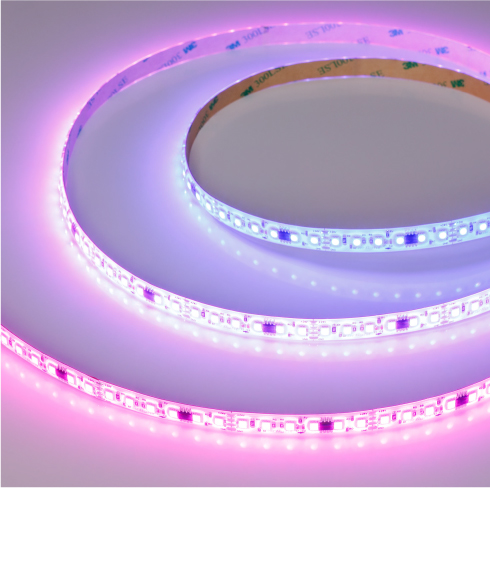 Организуйте стильную и эффектную подсветку белого или RGB-свечения. Высокий индекс цветопередачи CRI>90 обеспечивает точное восприятие цветовых оттенков. Благодаря протоколу управления SPI есть возможность легко записать на контроллер многоцветные эффекты любой сложности: от простейшего «бегущего огня» до необычных динамических изображений. Светодиодная лента хорошо подойдет для подсветки коммерческих помещений, витрин или конструкций, а также для создания ярких рекламных вывесок.