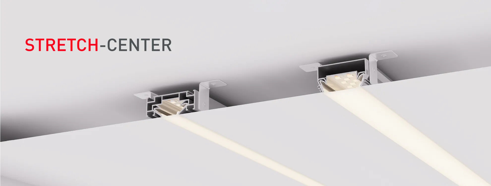 Профили STRETCH-CENTER — незаменимый инструмент для создания центральных линий света на потолке. Данные профили не только помогут вам реализовать основное и декоративное освещение в интерьере, но и станут надежным каркасом для крепления натяжного потолка.