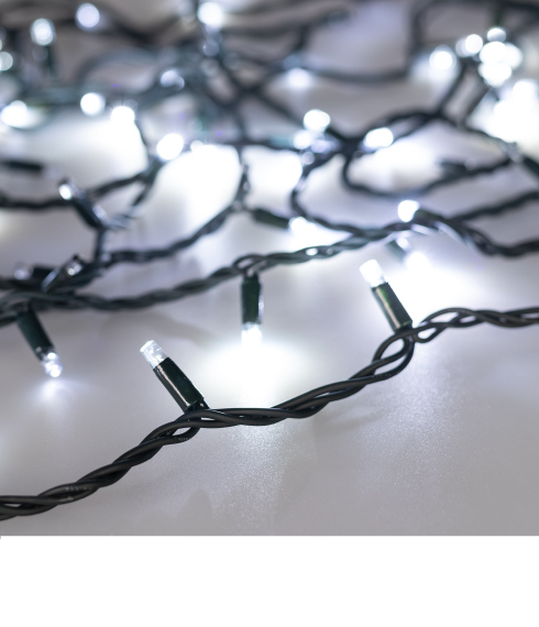 Соединение до 50 м За счет универсальных соединителей гирлянды можно соединять друг с другом в длину до 50 м, что позволяет оформлять фасады зданий и просторные помещения.