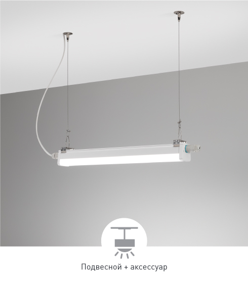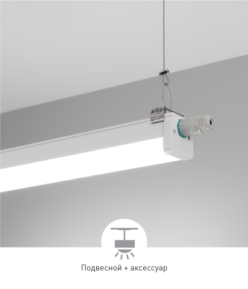Тип монтажа Накладной и подвесной. Благодаря сквозной проводке возможно соединять несколько светильников последовательно.