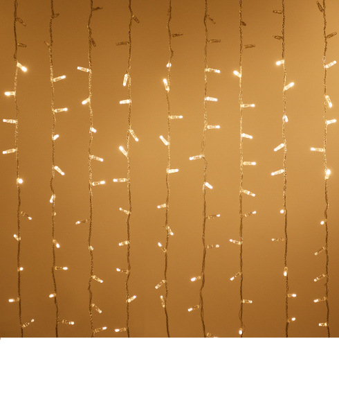 Гирлянда-занавес, состоящая из нитей равной длины, привнесет атмосферу волшебства и уюта даже в самую будничную обстановку.