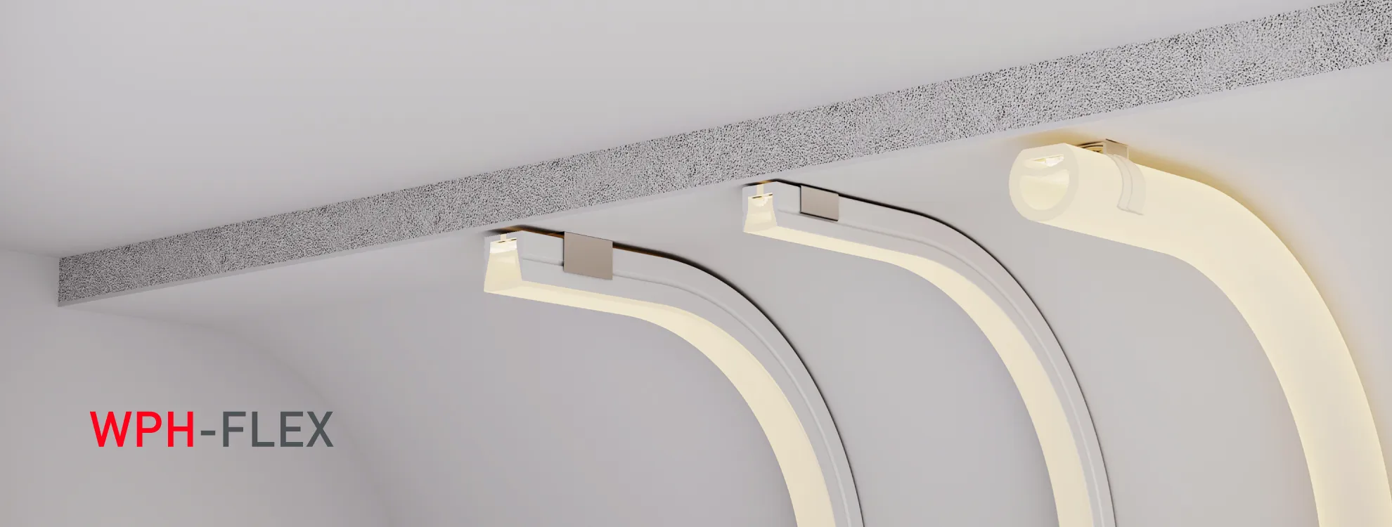 Для фасадов зданий и влажных помещений Возможность герметизации профиля до степени пылевлагозащиты IP65 позволяет использовать профили не только для декоративного оформления интерьера, но и для влажных помещений, подсветки входных групп и фасадов зданий.